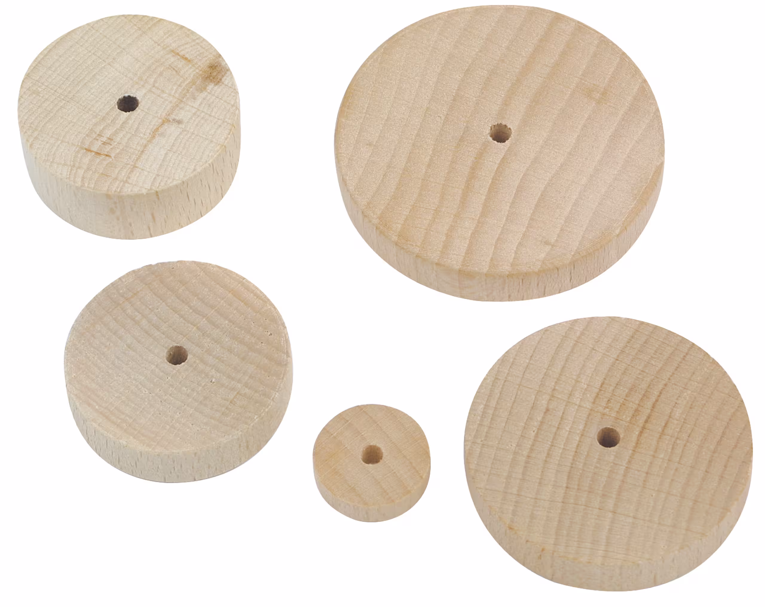 Buchenholzräder mit Bohrung, 10 Stück (20 x 6 mm)
