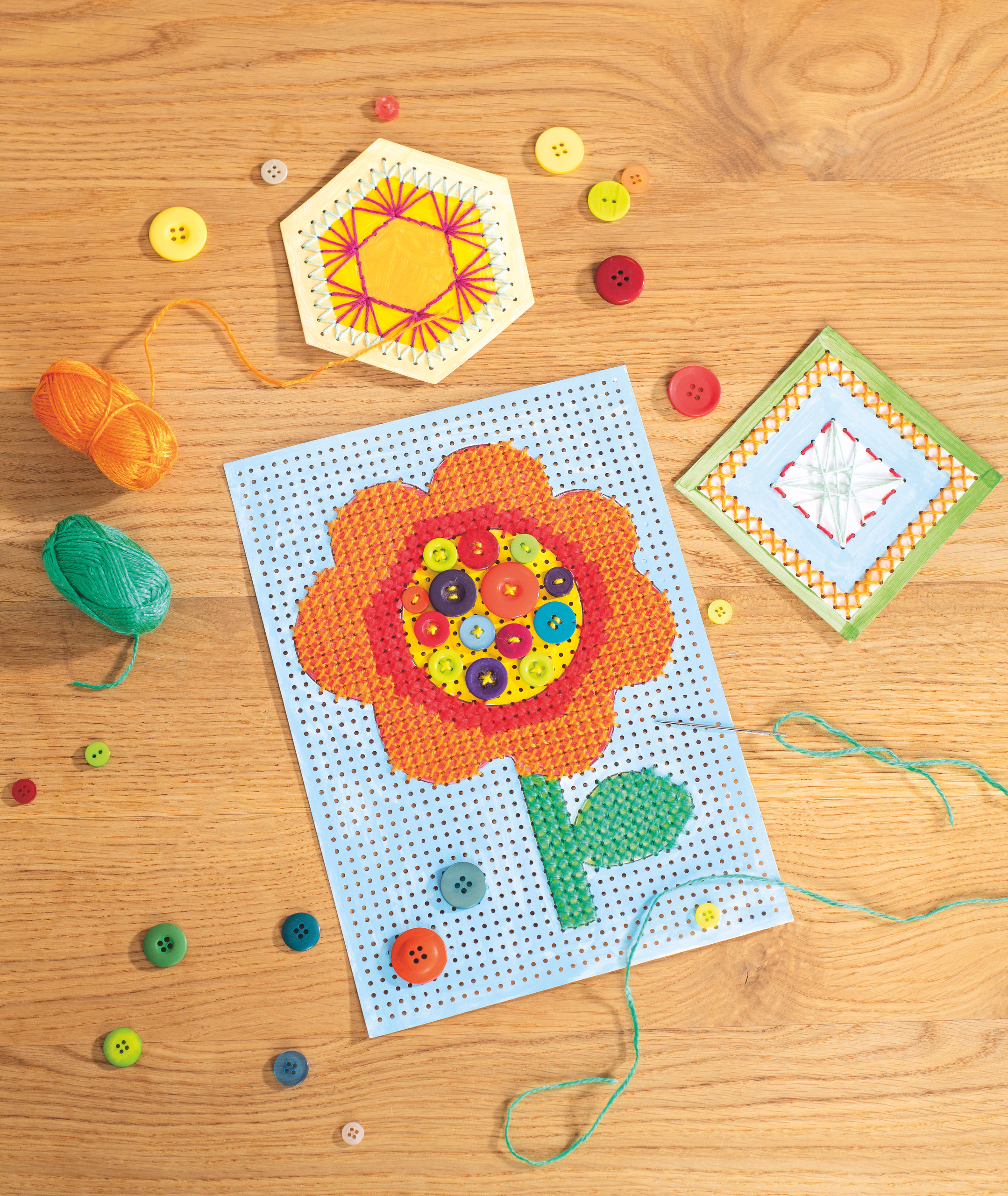 Die Ausnähkarten sind ideal geeignet für die ersten Nähversuche. Die Karten haben klare Motive und vorgeprägte Lochpositionen, die den Umgang mit Nadel und Faden erleicht...