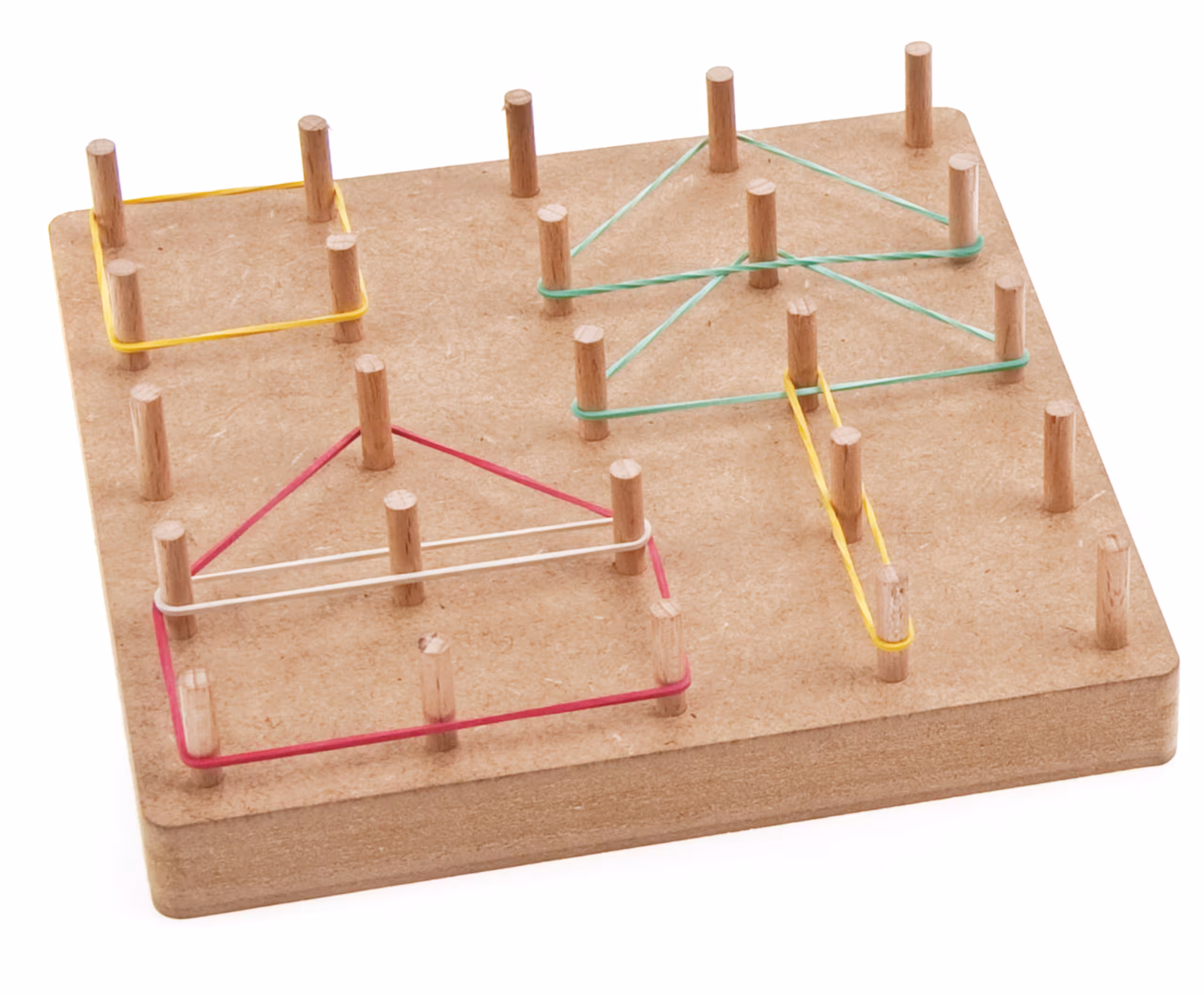 Das Geobrett eignet sich zur Entdeckung der geometrischen Formen, Figuren, Zahlen und Buchstaben. Es regt die Kreativität und Experimentierfreude an und fördert die Feinmotorik. Gummiringe nicht in der Verpackung enthalten.