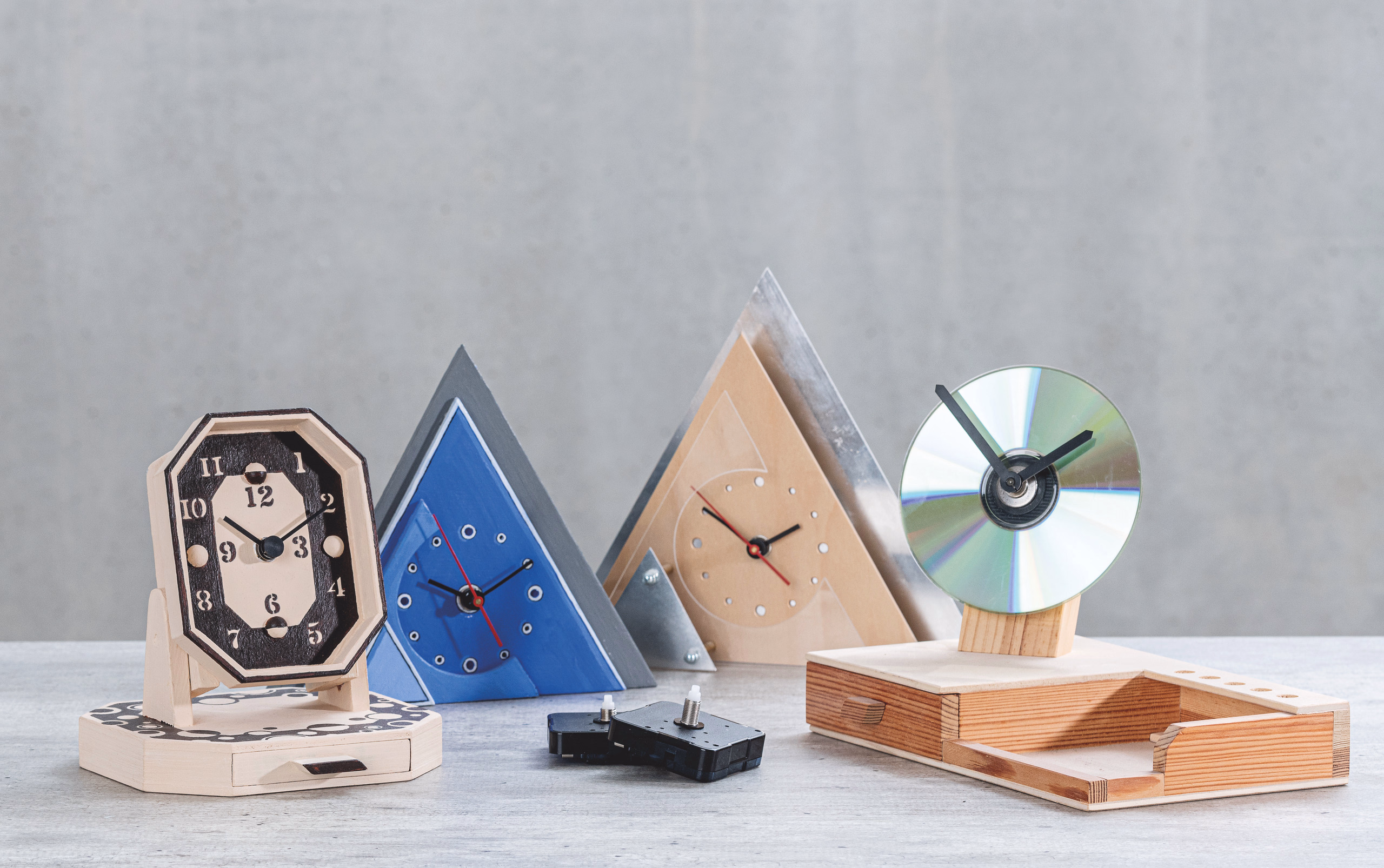Eine originelle Schreibtischuhr in zwei Bau-Möglichkeiten.