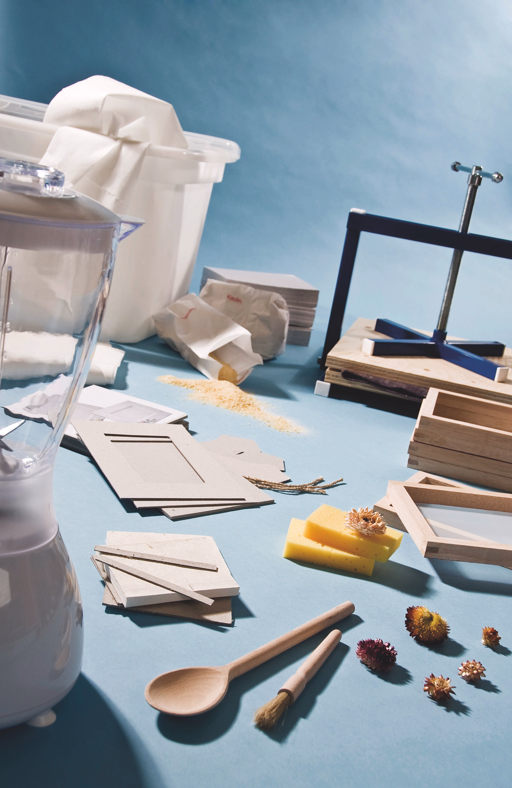 Das Set ist abgestimmt auf Projekt- und Gruppenarbeiten. Der Inhalt ist ausgerichtet für die Herstellung von ca. 1000 handgemachten Papierblättern im DIN A5 Format.