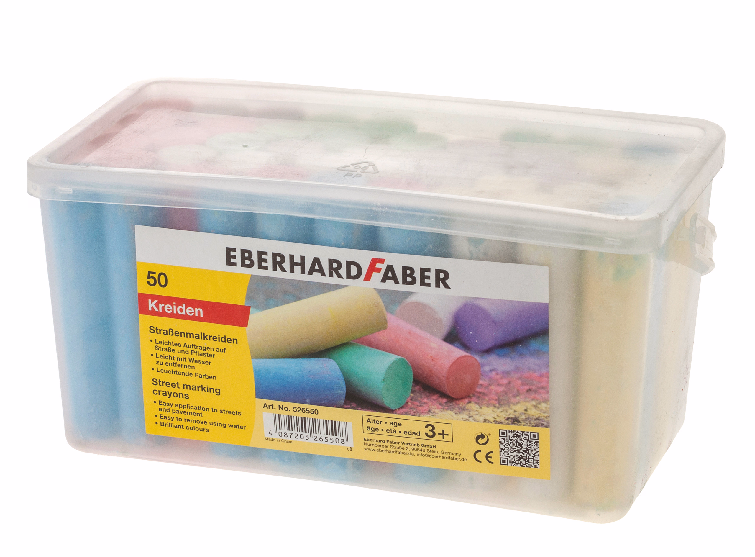50 Kreiden in einer praktischen Aufbewahrungsbox, farbig sortiert, leuchtende Farben in gelb, grün, rot, weiß, lila und blau, leicht mit Wasser entfernbar, ...