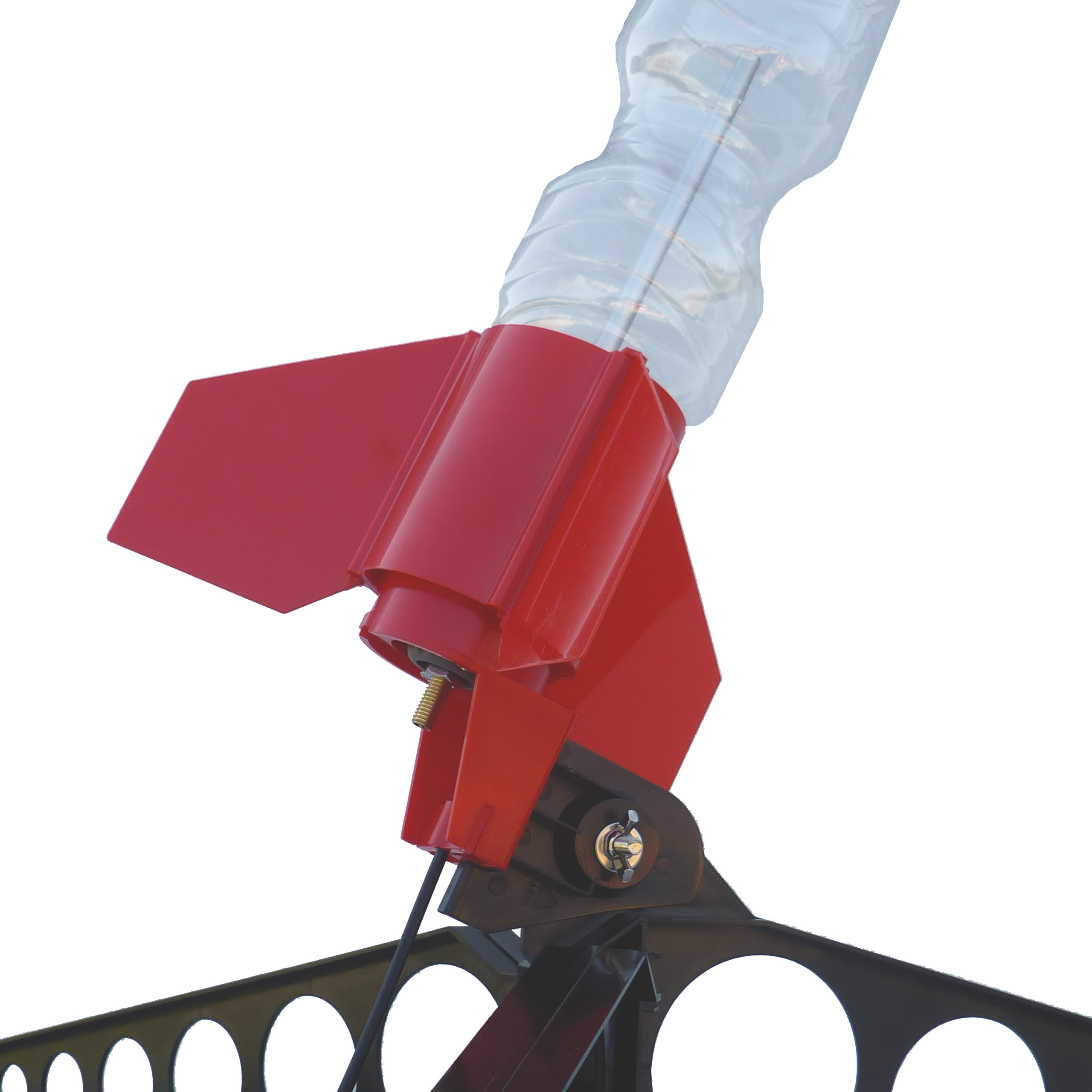 Die Startrampe ist robust und kippsicher und kann dennoch für den einfachen Transport kompakt zusammengelegt werden. Der spezielle Wasserraketen-Aufsatz hat einen Autoventilanschluss zum Befüllen mit Luft und bietet der Rakete eine sichere Führung während des Startvorgangs.