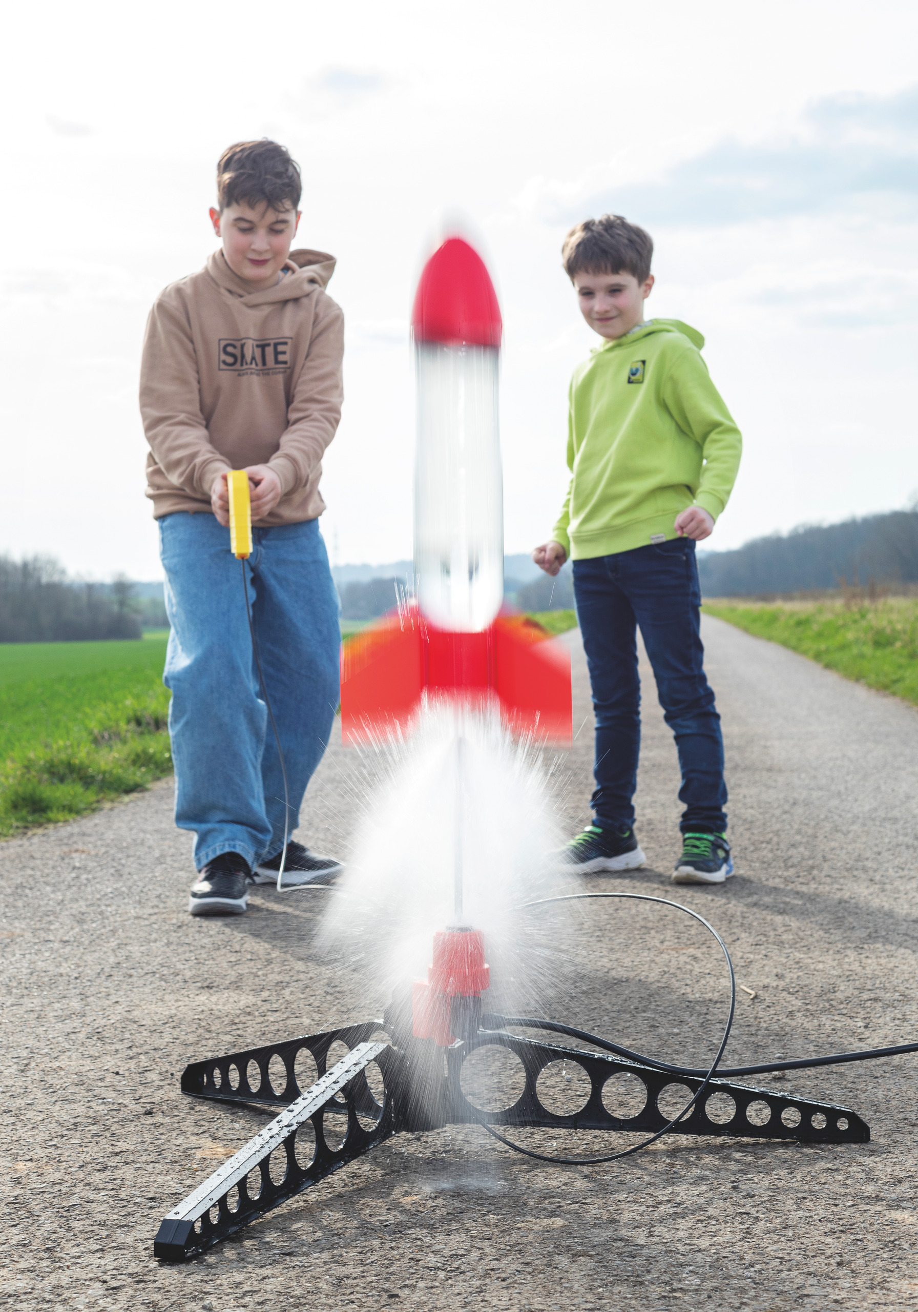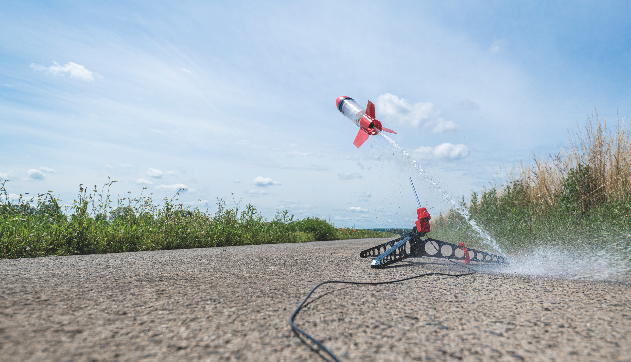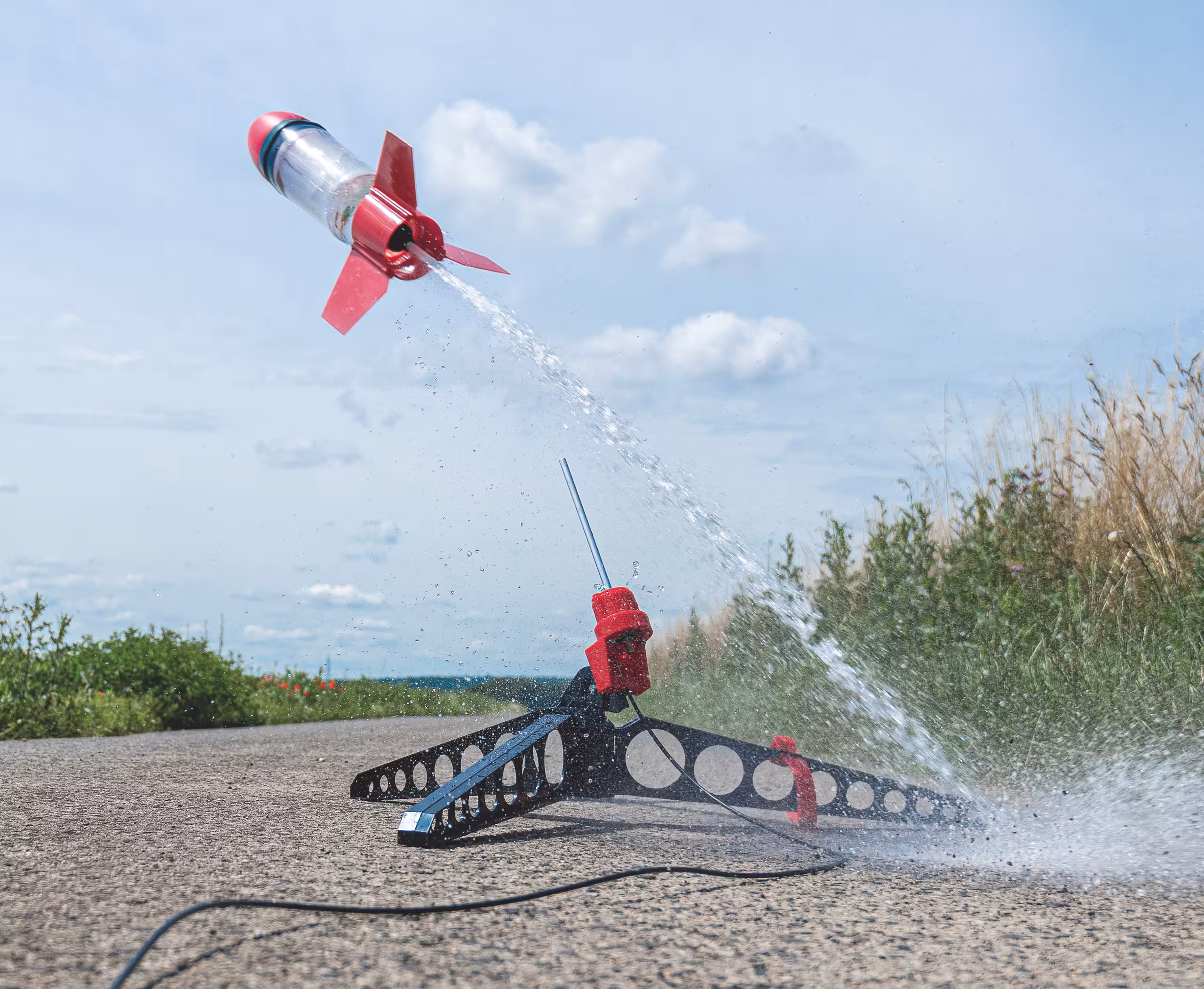 Durch Wasser und Luft kann die Rakete bis zu 100 m hoch fliegen!