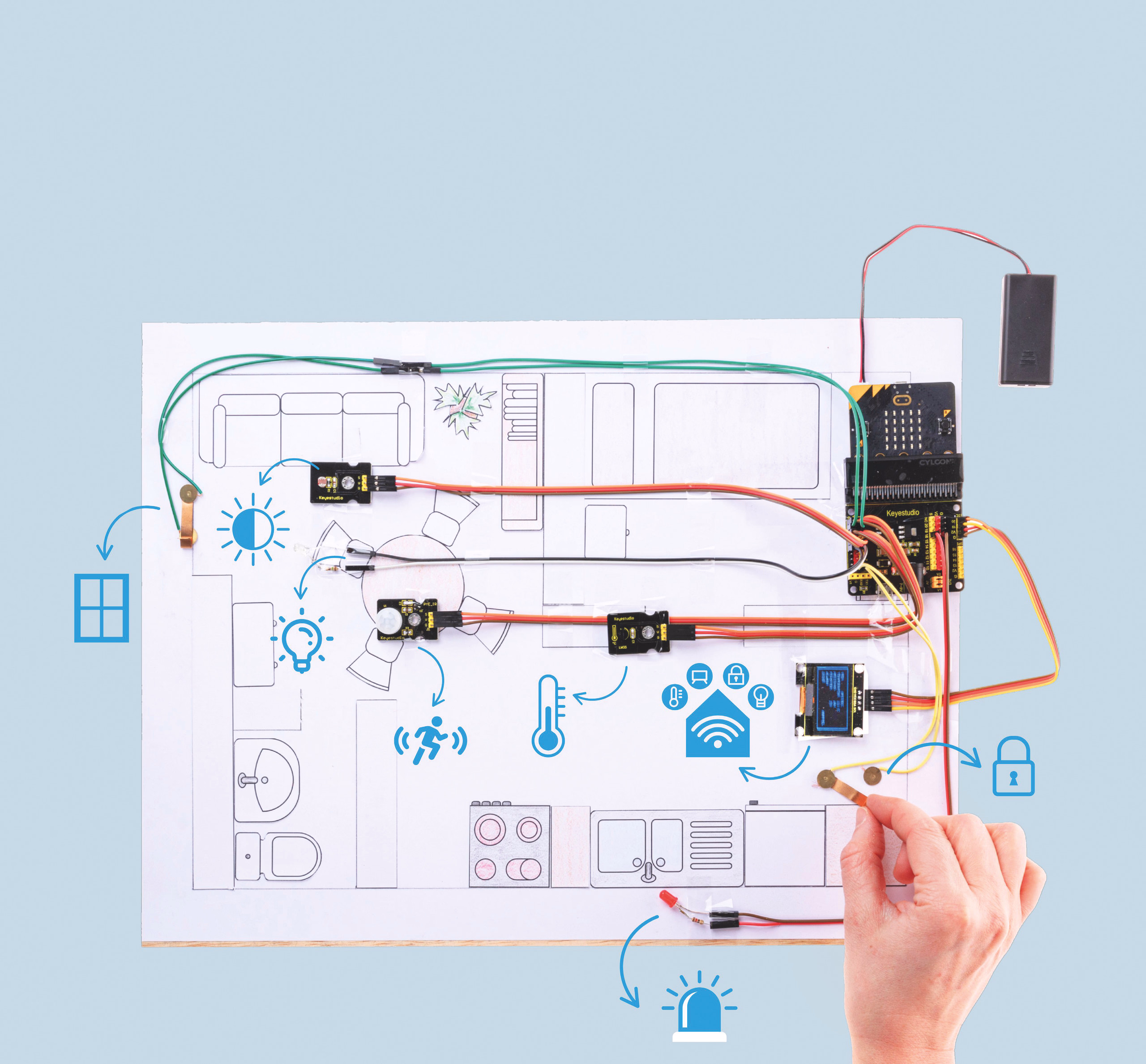 Eine speziell für BBC Micro:Bit entwickelte Sensor-Erweiterungsplatine (Breakout-Board), die alle 19 I/O-Pins auf der BBC Micro:Bit-Steuerplatine als GVS-Schnittstelle (GVS=Ground, Voltage, Signal) herausführt, um sie mit anderen Erweiterungsmodulen (z.B. Sensoren, Displays oder Servomotoren) zu verbinden.