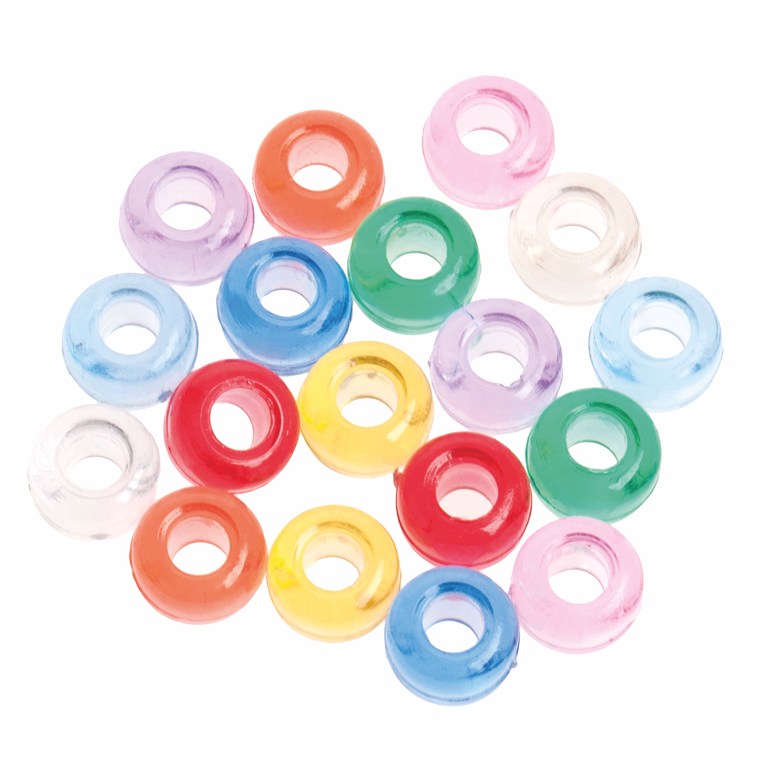 Maße: ca. ø 9 mm, Bohrung: ca. 4 mm, transparent bunt, ca. 1000er-Set