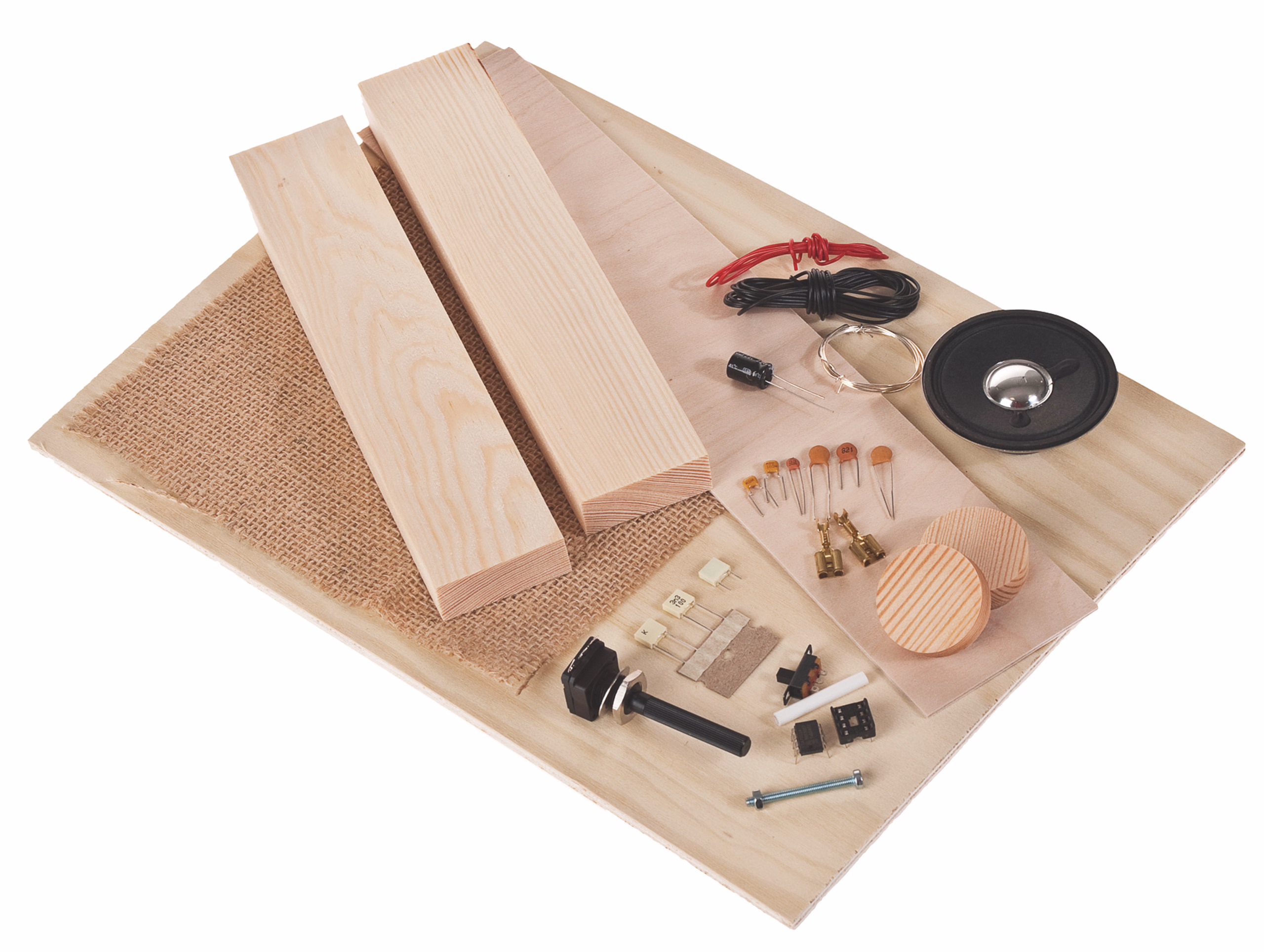 Die Platine ist fertig geätzt und bedruckt. Der Radio-IC in SMD Bauweise ist bereits aufgelötet. Der Bestückungsaufdruck macht das Einsetzen und Verlöten der Bauteile ganz einfach. Die stromsparende Schaltung wird mit einer 4,5 V Flachbatterie betrieben. Lieferung ohne 4,5V Batterie. Erforderliche Arbeiten: Bohren, Sägen, Löten, Leimen und Anreißen.