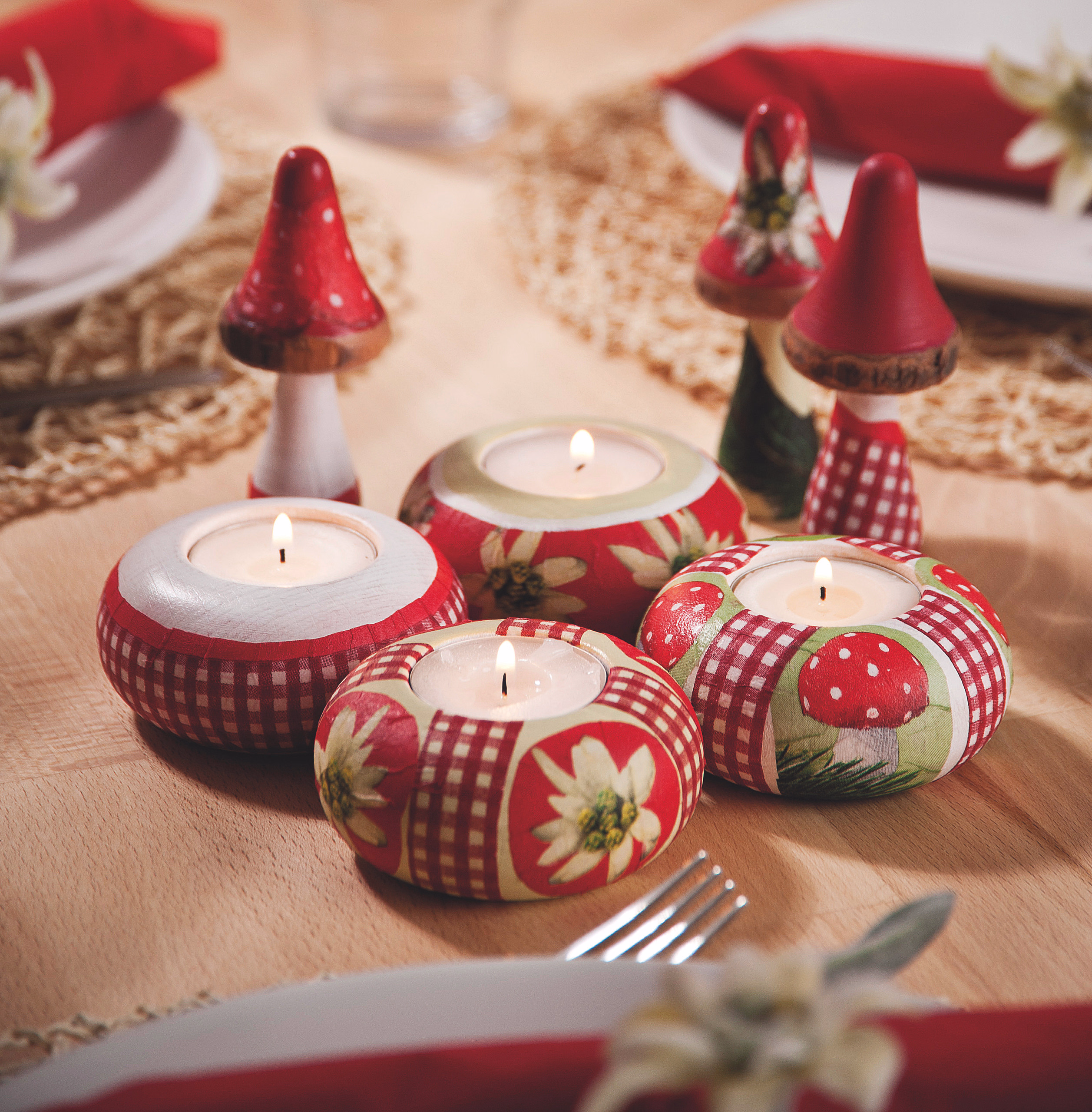 Teelichthalter Holz, Rad gerundet (7,9 x 3,4 cm)