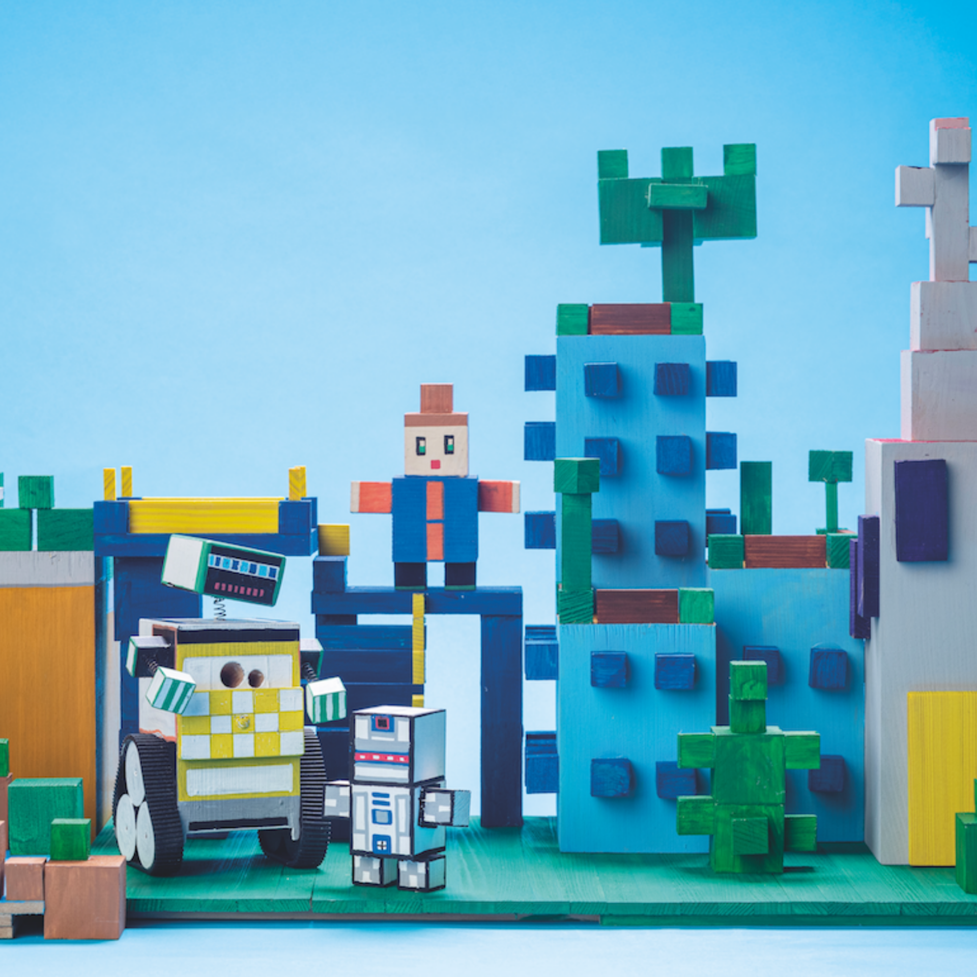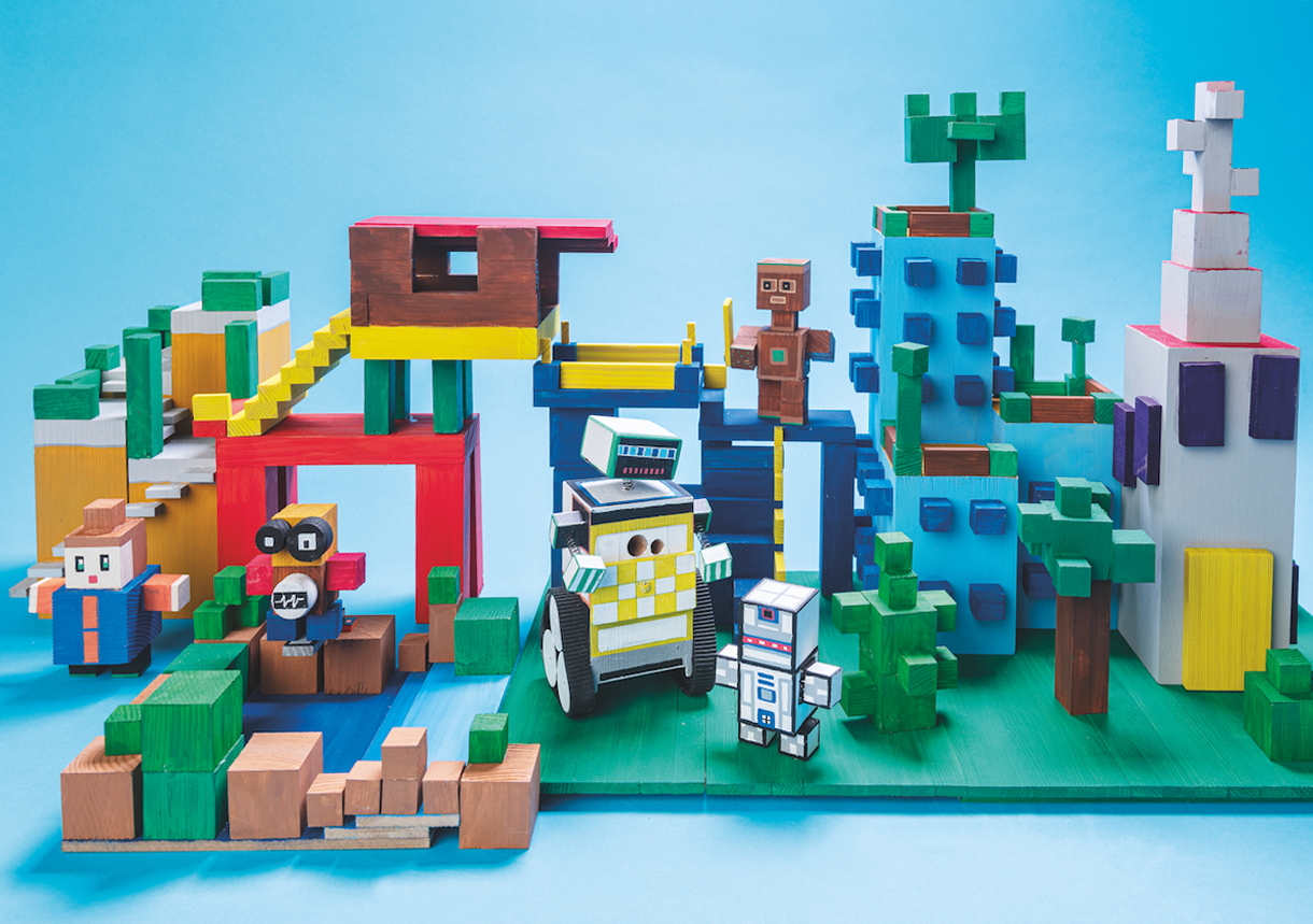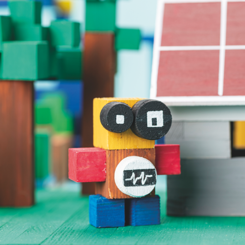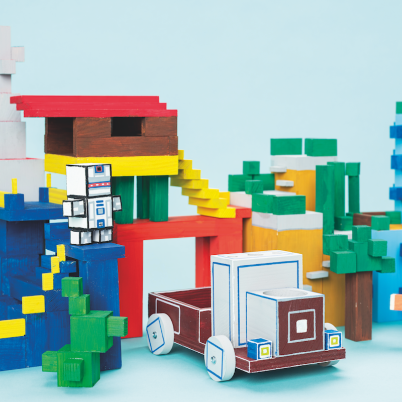 Aus Würfeln und Leisten entstehen ganze Bauwelten: Häuser, Türme, Figuren und kleine Szenen mit eigener Logik und Geschichte. Kinder bauen, stapeln, kombinieren und verändern – und entdecken dabei ganz selbstverständlich geometrische Formen, räumliche Beziehungen, Höhen, Symmetrien und einfache statische Zusammenhänge.