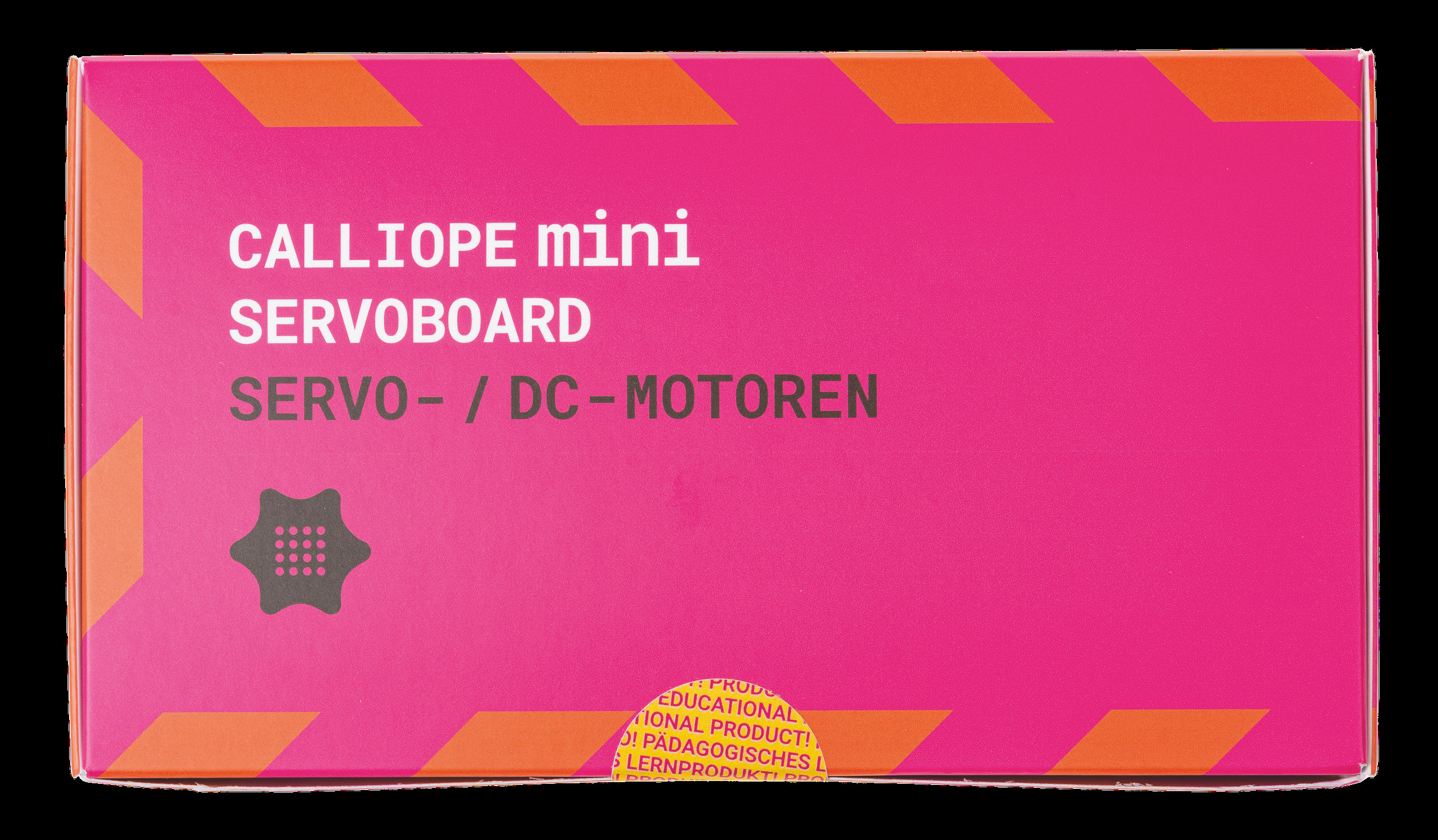 Der Calliope mini 3 ist mit einer Pinleiste ausgestattet. Über diese lässt sich das Calliope mini Servoboard einfach anstecken. Das Calliope mini Servoboard ermöglicht das Ansteuern von bis zu 4 Servomotoren und 2 Motoren.