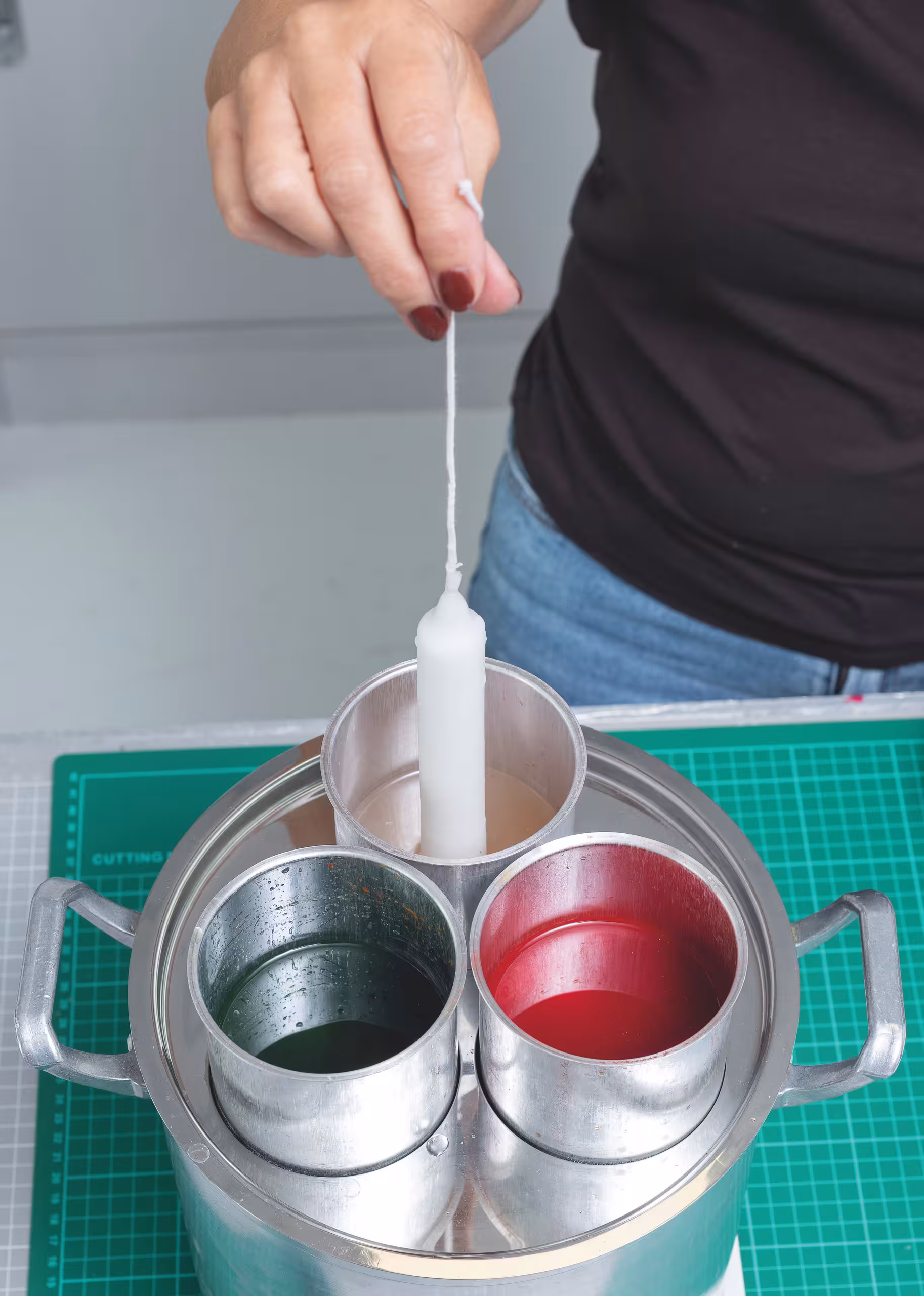Mit dem farblosen und granulatförmigen Paraffin (3% Polymer) können Tauchkerzen schneller als bisher hergestellt werden. Dazu wird das Wachs geschmolzen und der Docht mehrmals in die heiße Wachsmischung eingetaucht. Bei jedem Eintauchen legt sich eine dickere Wachsschicht um den Docht, sodass der Umfang der Kerze größer wird und zum Schluss eine ein- oder mehrfarbige Tauchkerze entstanden ist. Die Tauchtemperatur liegt bei ca. 75 - 80°C. 2,5 kg