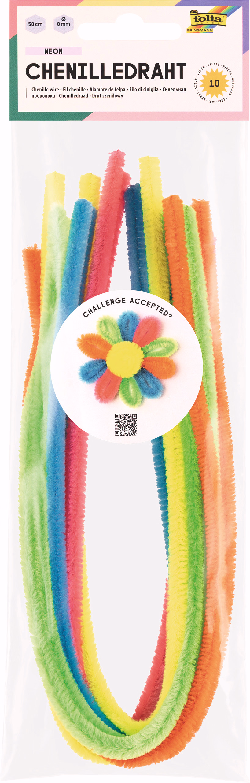 Chenilledraht, 10 Stück neon (ca. 8 mm)