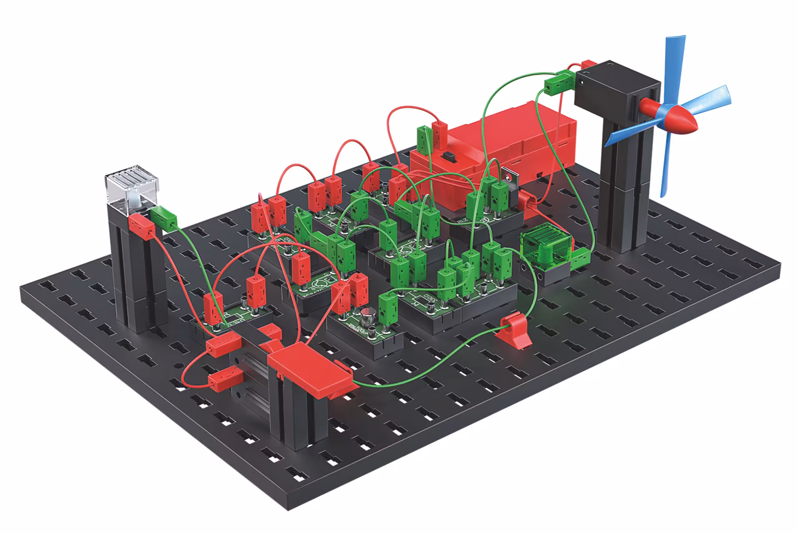 Dieser Baukasten vermittelt die Grundlagen der Elektronik und bietet eine Vielzahl an verschiedenen Themengebieten. Von einfachen bis hin zu komplexen Modellen, wie beispielsweise ein Wechselblinker, lassen sich mit diesem Set viele spannende Funktionsmodelle konstruieren. Das Konzept wird durch das online verfügbare und frei zugängliche Begleitmaterial abgerundet.