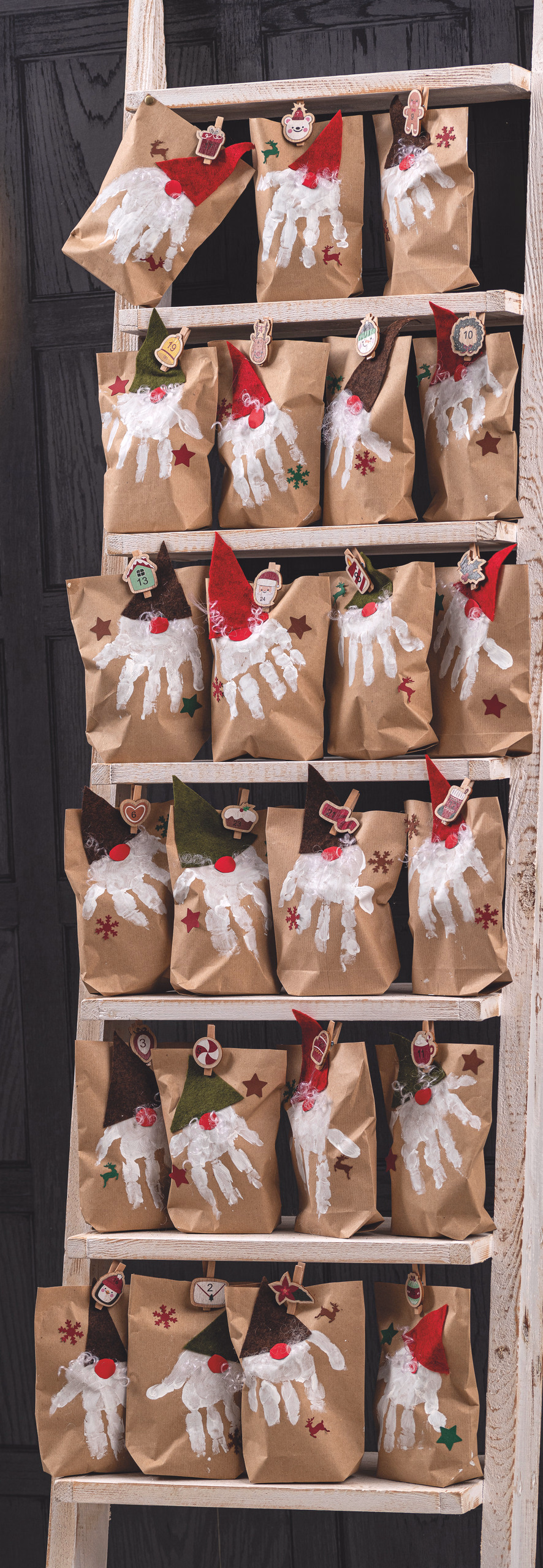 Holzklammern Adventskalender Motive + Zahlen 1-24