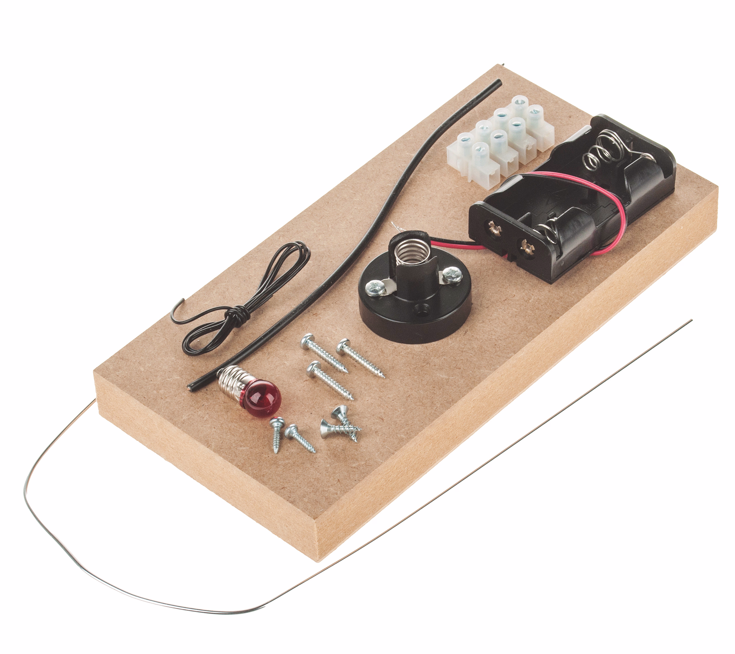 Ein bekanntes Geschicklichkeitsspiel. Beim Berühren des Drahtes leuchtet ein rotes Licht auf. Einfacher Stromkreis ohne Lötarbeit. Aufbau im Klassenzimmer möglich. Werkpackung hervorragend für die Grundschule geeignet.