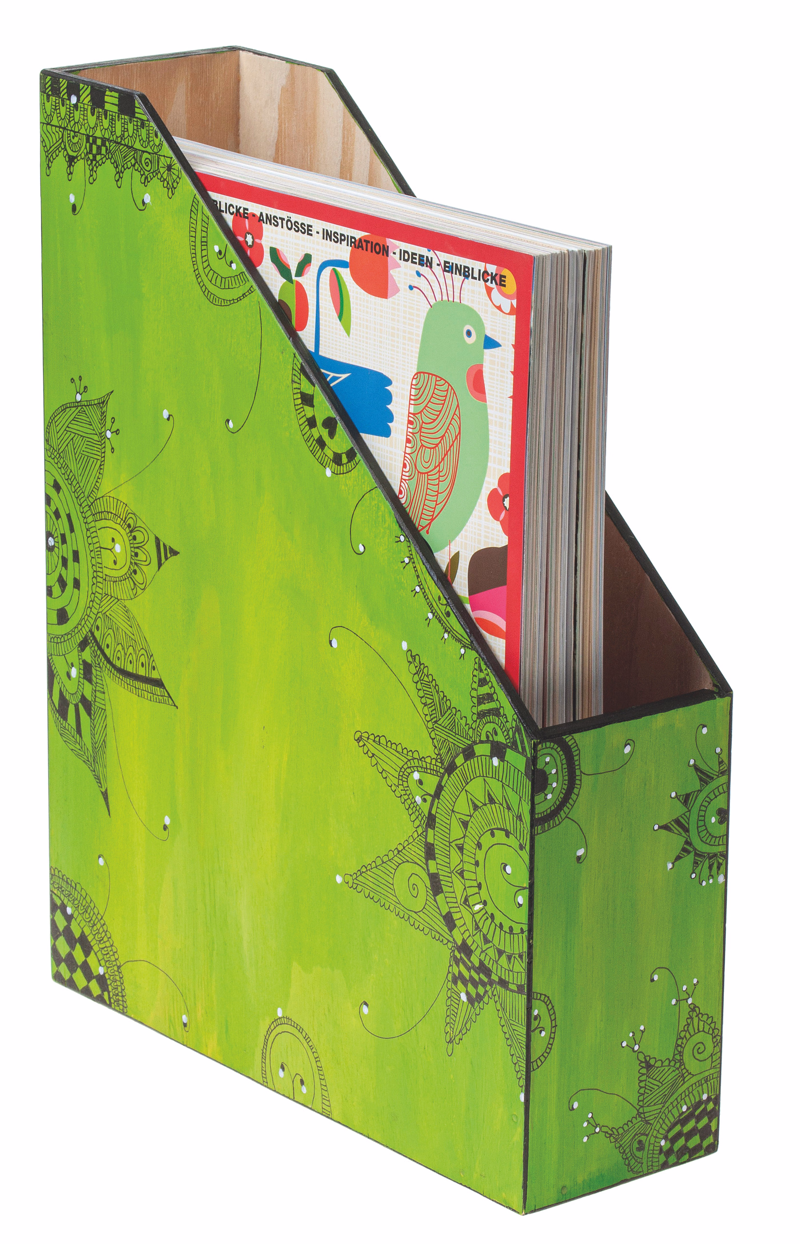 Stabiler Ordner aus Kiefernsperrholz. Platzsparender Ordner für Hefte, Zeitschriften, DIN A4 Blätter und schmale Bücher.