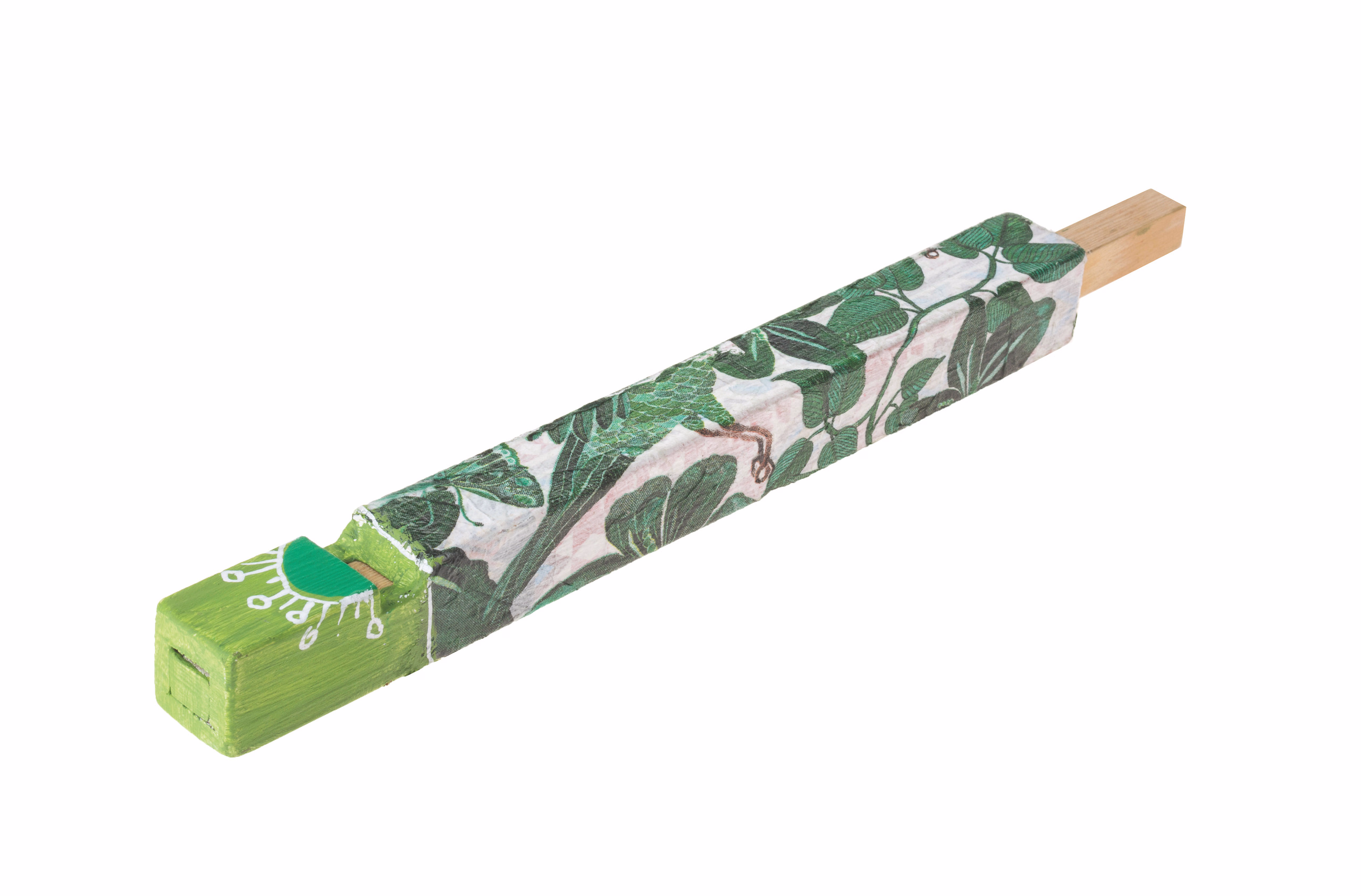 Kleine Materialpackung für eine Kolbenflöte, die in ihrer Tonhöhe verändert werden kann. Deshalb ist die Kolbenflöte auch als richtiges Musikinstrument geeignet. Durch Verschieben der schmalen Holzleiste wird das Volumen des Klangkörpers verändert, was beim Hineinblasen verschiedene Töne erzeugt. Unbehandeltes Holz. Bastelpackung inkl. Bauplan. Kein Bohren erforderlich! Erforderliche Arbeiten: Sägen, Leimen, Anreißen und Schleifen. Maße: ca. 260 x 20 x 20 mm, 1 Stück