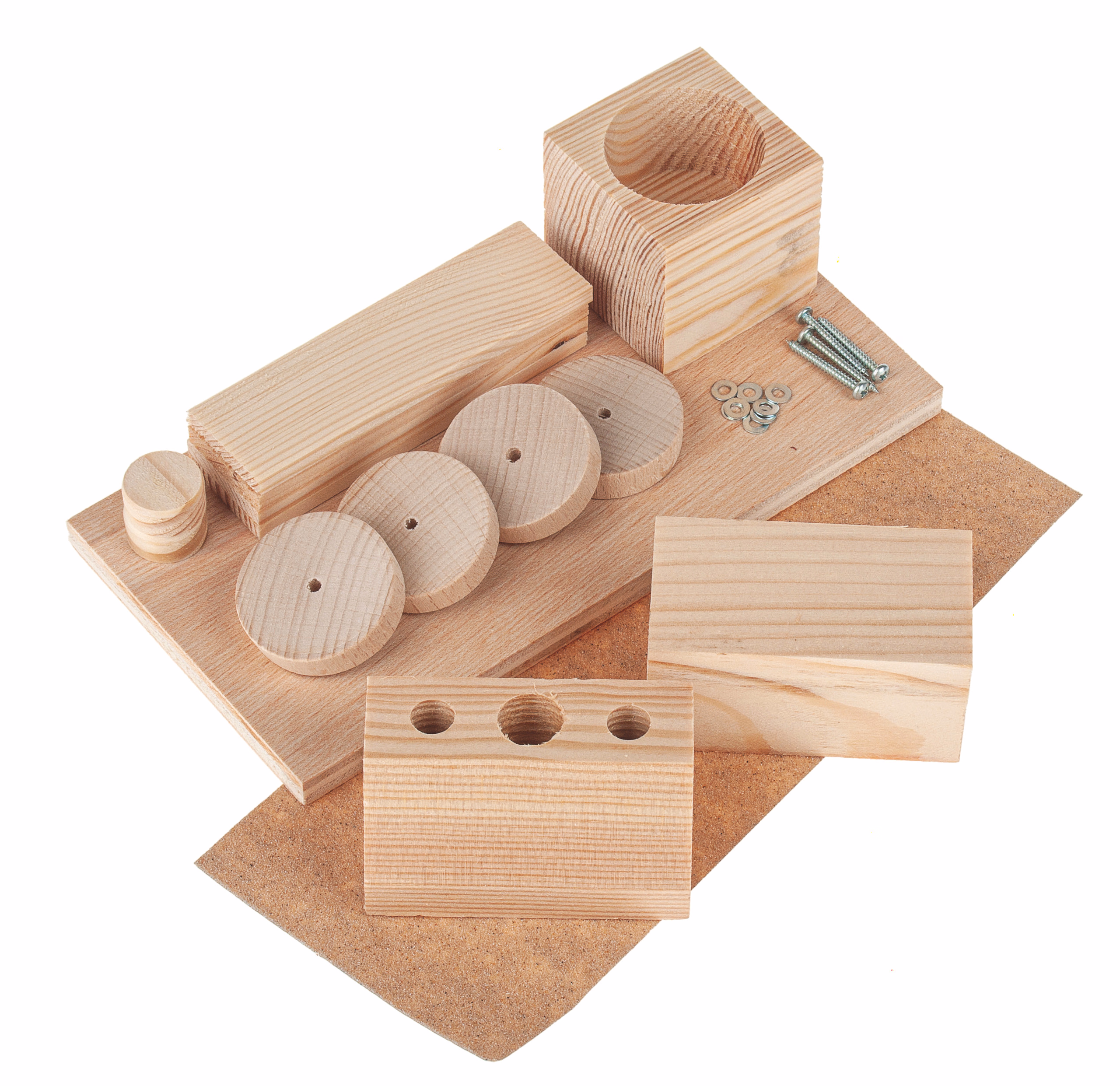 Lieferung ohne Notizblock und ohne Dekomaterial (Löcher sind vorgebohrt). Erforderliche Arbeiten: Anreißen, Leimen und Montieren.
