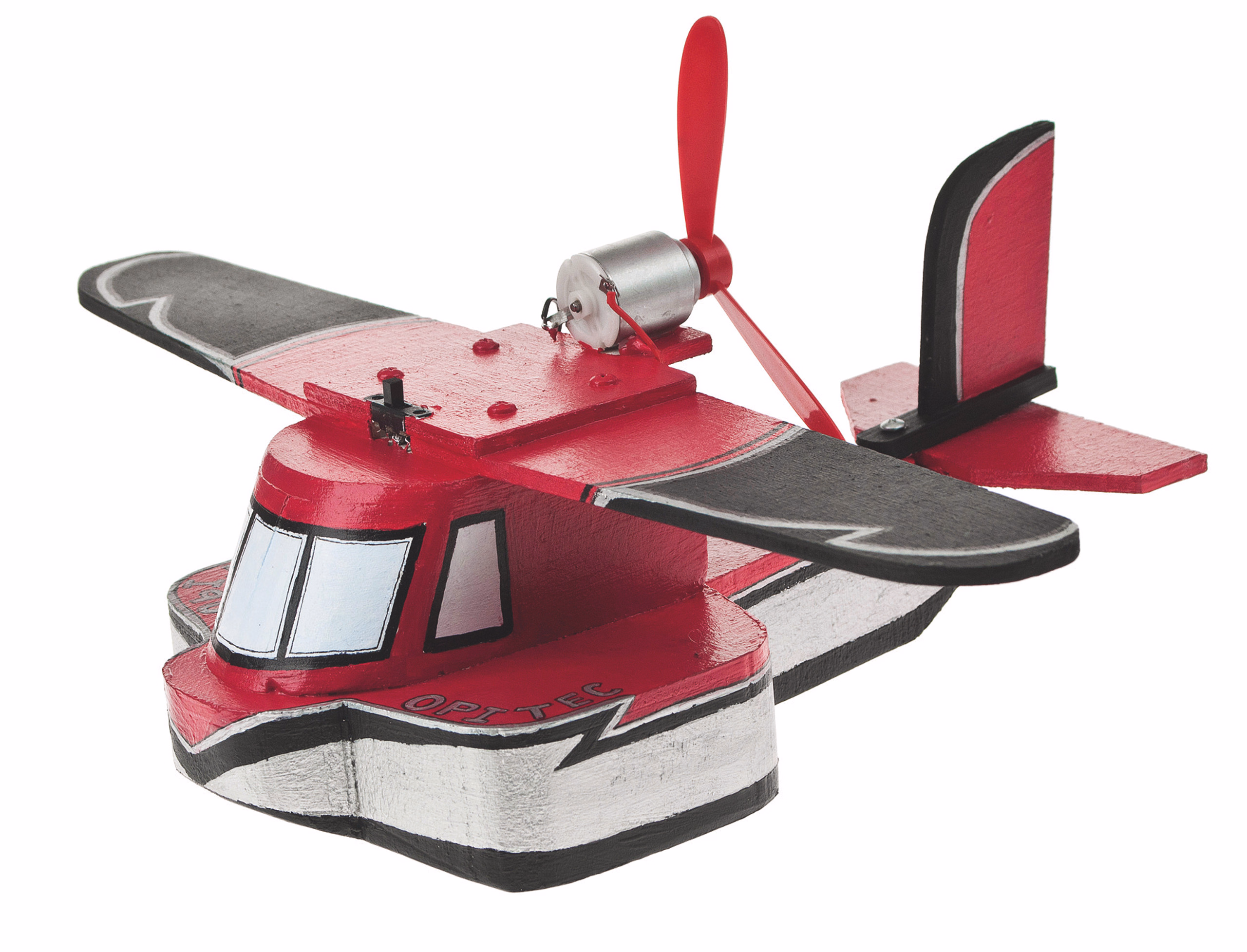 Formschönes Modell, das durch den Propellerantrieb über das Wasser gleitet. Steuerbar über die Verstellung des Seitenruders. Ein einfacher Stromkreis (auch ohne Löten möglich) mit Schiebeschalter. Ausführliche Anleitung mit Schablonen. Lieferung ohne 2 Mignon-Batterien (AA).
