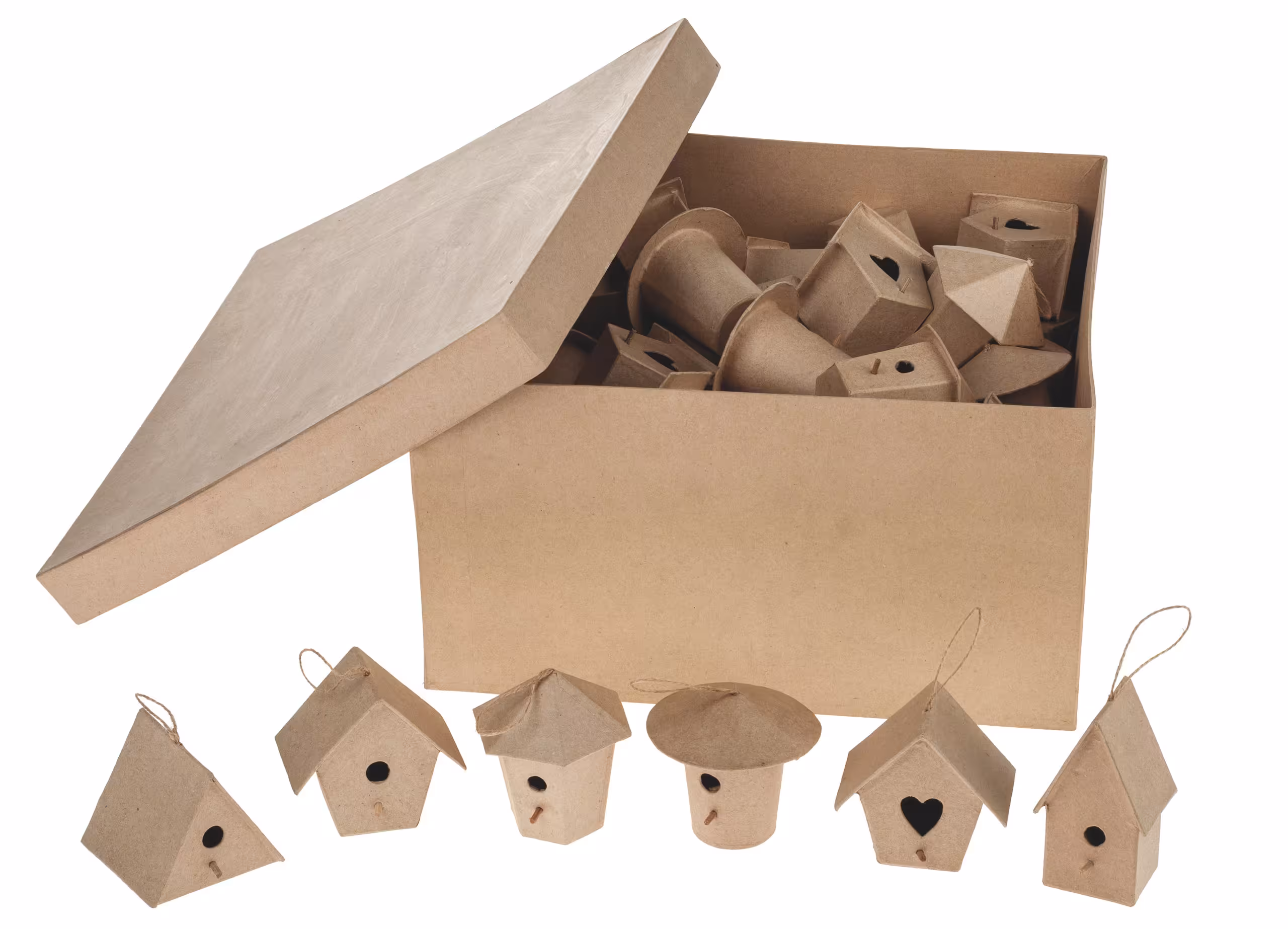 Maße Anhänger: ca. 65 - 100 mm hoch, 60er-Set Paper-Art Set - Deko Vogelhäuschen