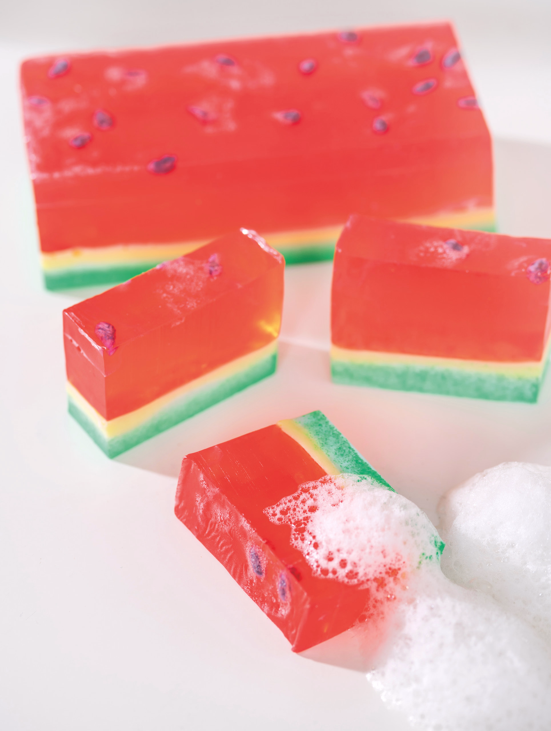 Die transparente Seifenfarbe eignet sich ausgezeichnet zum Einmischen in die geschmolzene, farblose oder weiße Gießseife. Beim Vermischen in transparente Gießseife entstehen transparentfarbige Seifenstücke. Beim Einmischen in weiße Seife verfärbt sich diese pastellartig.