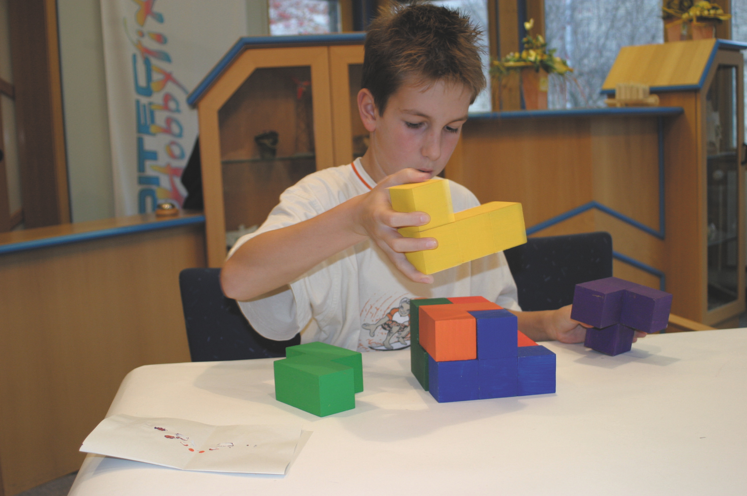 Der SOMA-Würfel ist ein 3D-Puzzle aus Buchenholz, bestehend aus 27 Holzwürfeln. Aus den einzelnen Holzwürfeln werden nach Anleitung 7 sogenannte SOMA-Teile hergestellt. Wenn man dann die 7 Teile richtig zusammensetzt kommt dabei der SOMA-Würfel heraus. Das fördert das räumliche Vorstellungsvermögen und die Kreativität beim erfinden weitere Figuren.