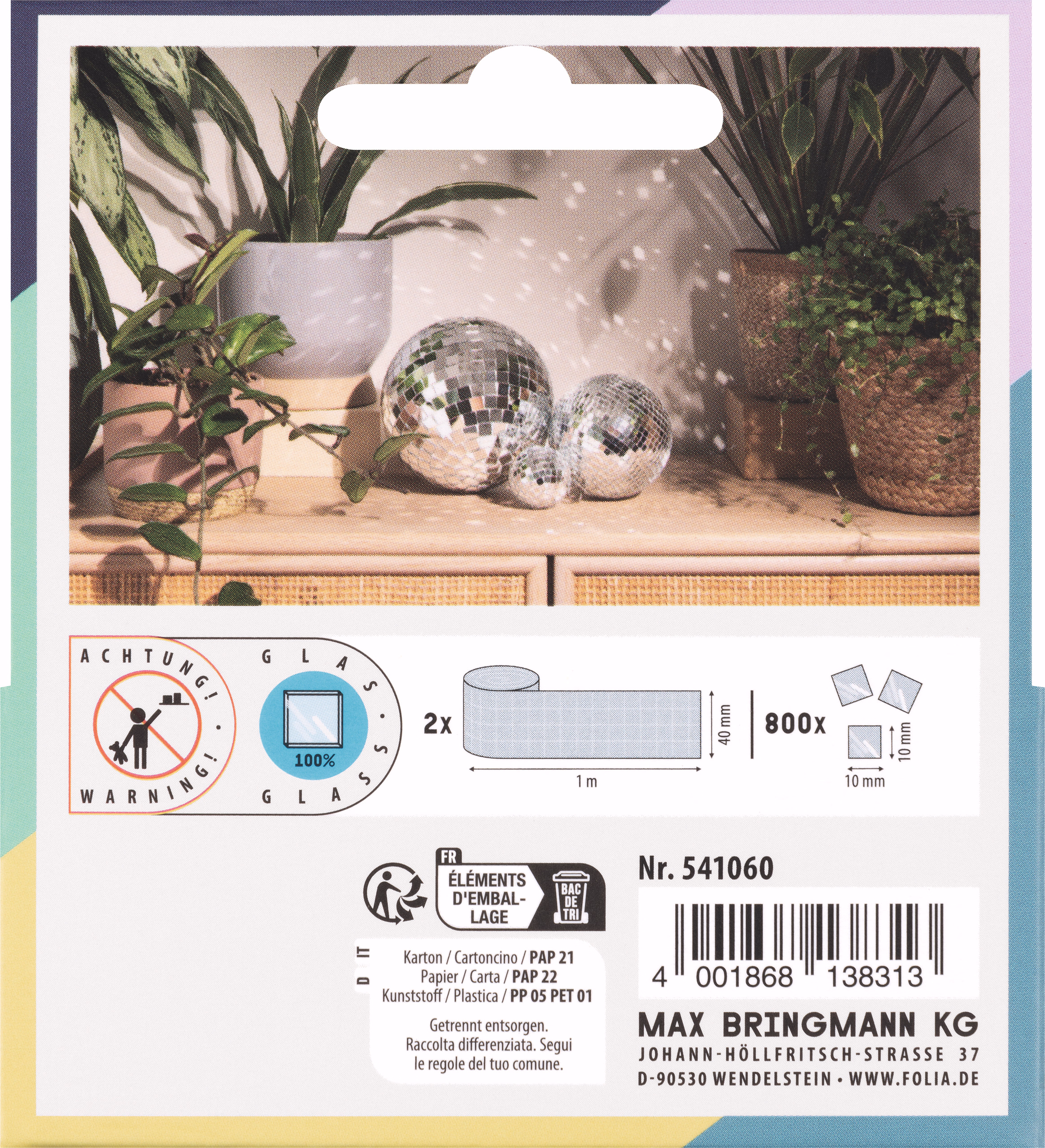 100 % Glas, selbstklebend, auf Rolle, Maße: Steine ca. 10 x 10 x 1 mm, Rolle ca. 40 mm x 1 m , ca. 800 Steine, 2 Stück
