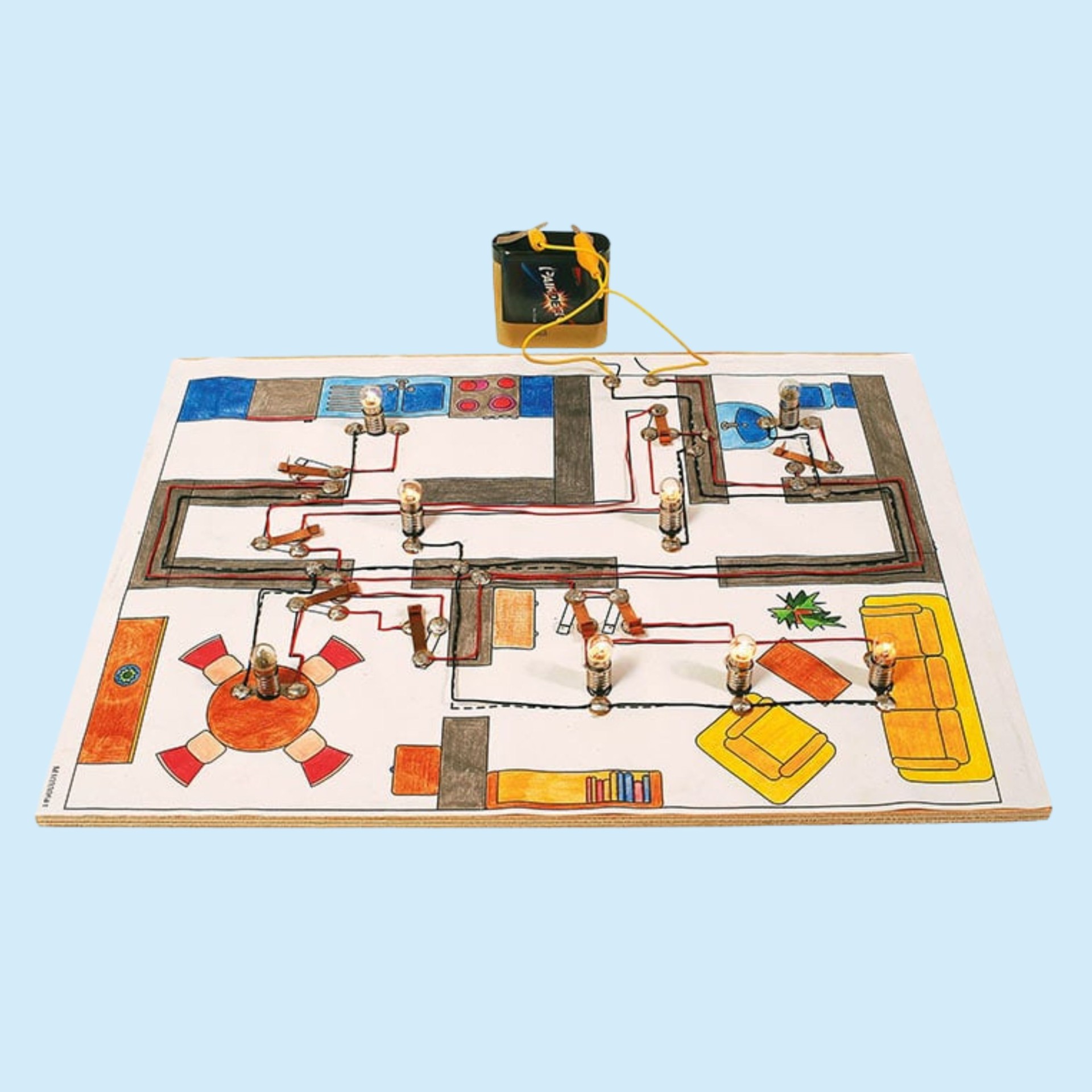 Elektrische Energie ist aus dem Alltag von Kindern nicht wegzudenken – vom Lichtschalter bis zur Steckdose. Genau hier setzt diese Themenwelt an: Haus-Elektroinstallation wird greifbar, verständlich und aktiv erlebbar gemacht. Statt abstrakter Theorie arbeiten Schülerinnen und Schüler an konkreten Modellen, bauen eigene Stromkreise auf und verstehen, wie elektrische Installationen im Haushalt funktionieren. Das schafft nicht nur Aha-Momente, sondern fördert nachhaltiges technisches Verständnis.