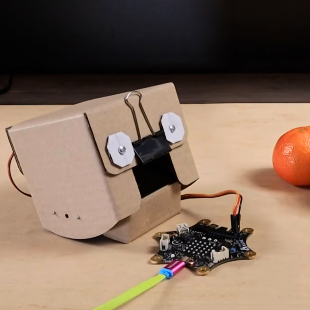 In diesem Projekt bauen Schülerinnen und Schüler ihren eigenen beweglichen „Hungrigen“ oder „Müden“ Roboter nach den Vorlagen von LOFI Roots. Der Kopf oder Kiefer wird mechanisch konstruiert und über einen 180°-Servomotor bewegt. Gesteuert wird alles mit dem Calliope mini – zunächst per Knopfdruck, später über Sensoren wie Licht, Magnetkraft oder Lautstärke. So entsteht ein interaktives Objekt, das auf seine Umgebung reagiert.