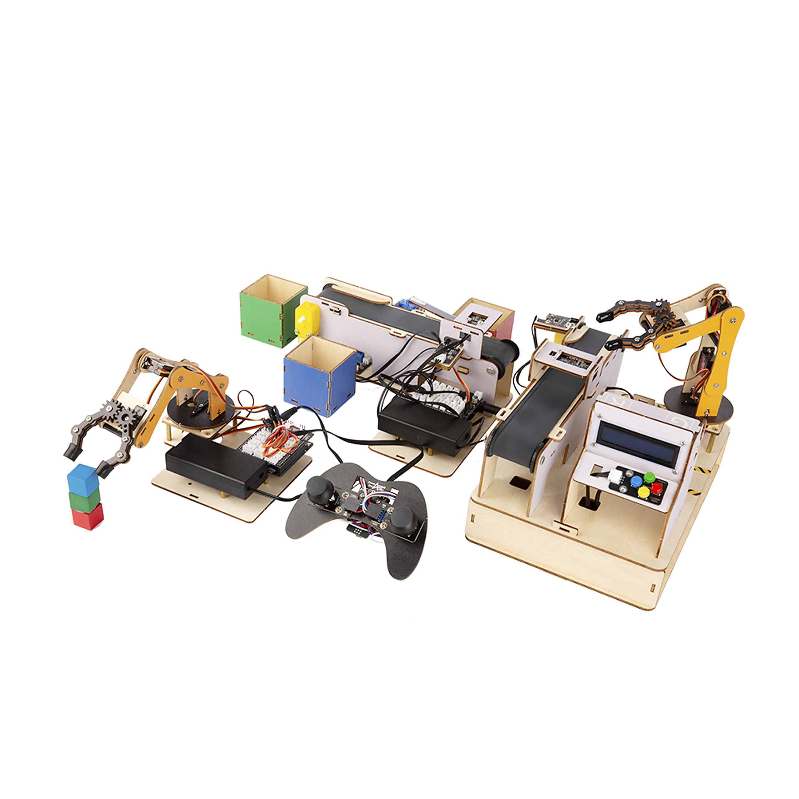 Mit diesem Kit bauen Schüler realistische Projekte wie einen intelligenten Roboterarm, ein automatisiertes Sortiersystem und ein intelligentes Lager, um Logistik und Bestandsverwaltung zu simulieren. Ideal für alle, die sich für Programmierung und Robotik begeistern.