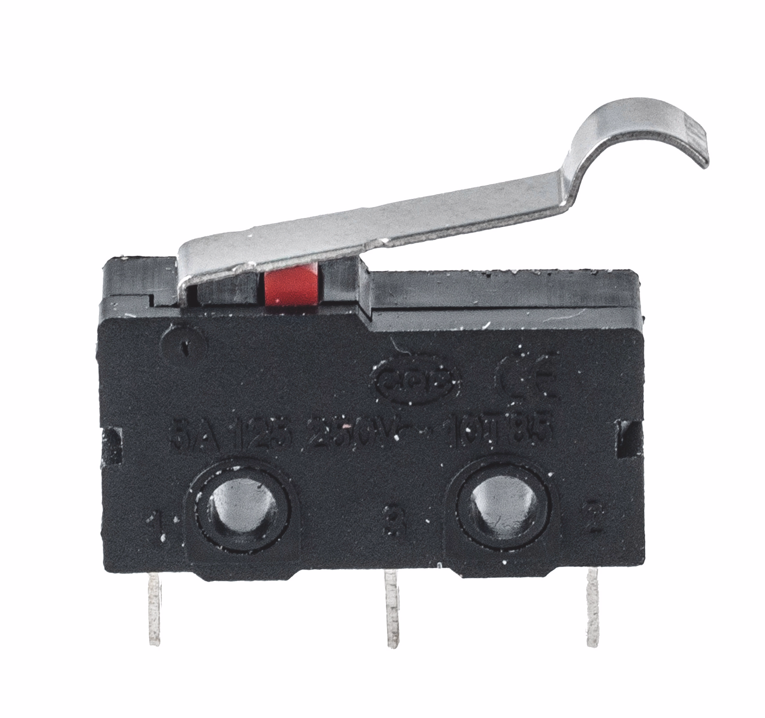 gekröpfter Hebel, max. 5 A/250 V, Schaltkraft 50 g, Rückstellkraft 6 g, Hebelweg ca. 4 mm,