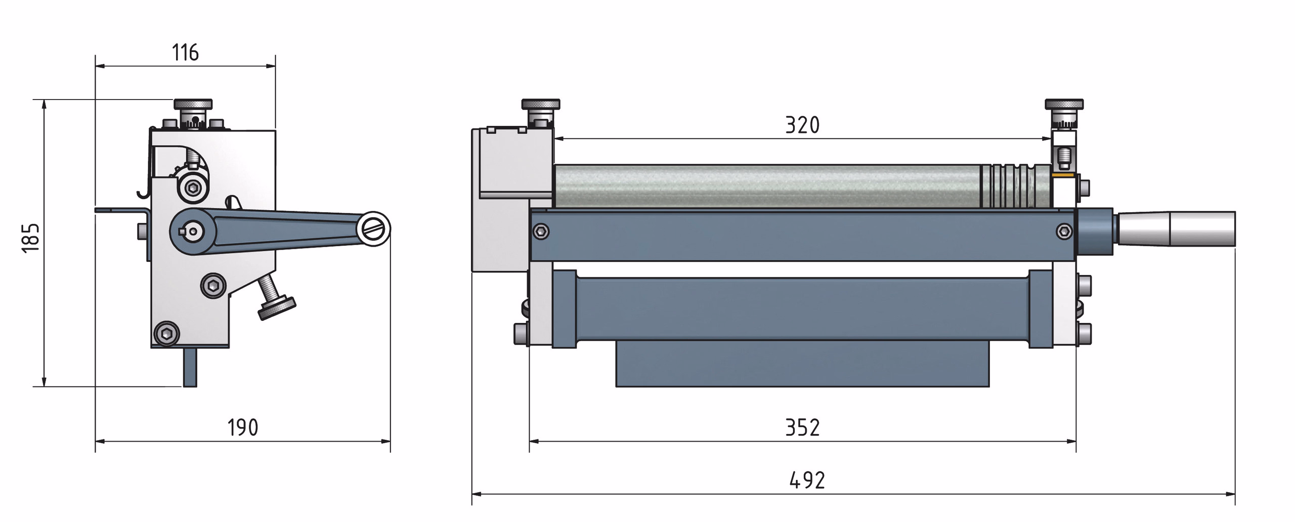 Zum Biegen und Rollen von Drähten, Rohren und Blechen. Geschliffene Biegerollen, 2 abnehmbare Abrollwalzen, getrennte Einstellmöglichkeit für Materialstärke und Rollradius. Für den Einsatz am Schraubstock. Ohne Schraubstock.