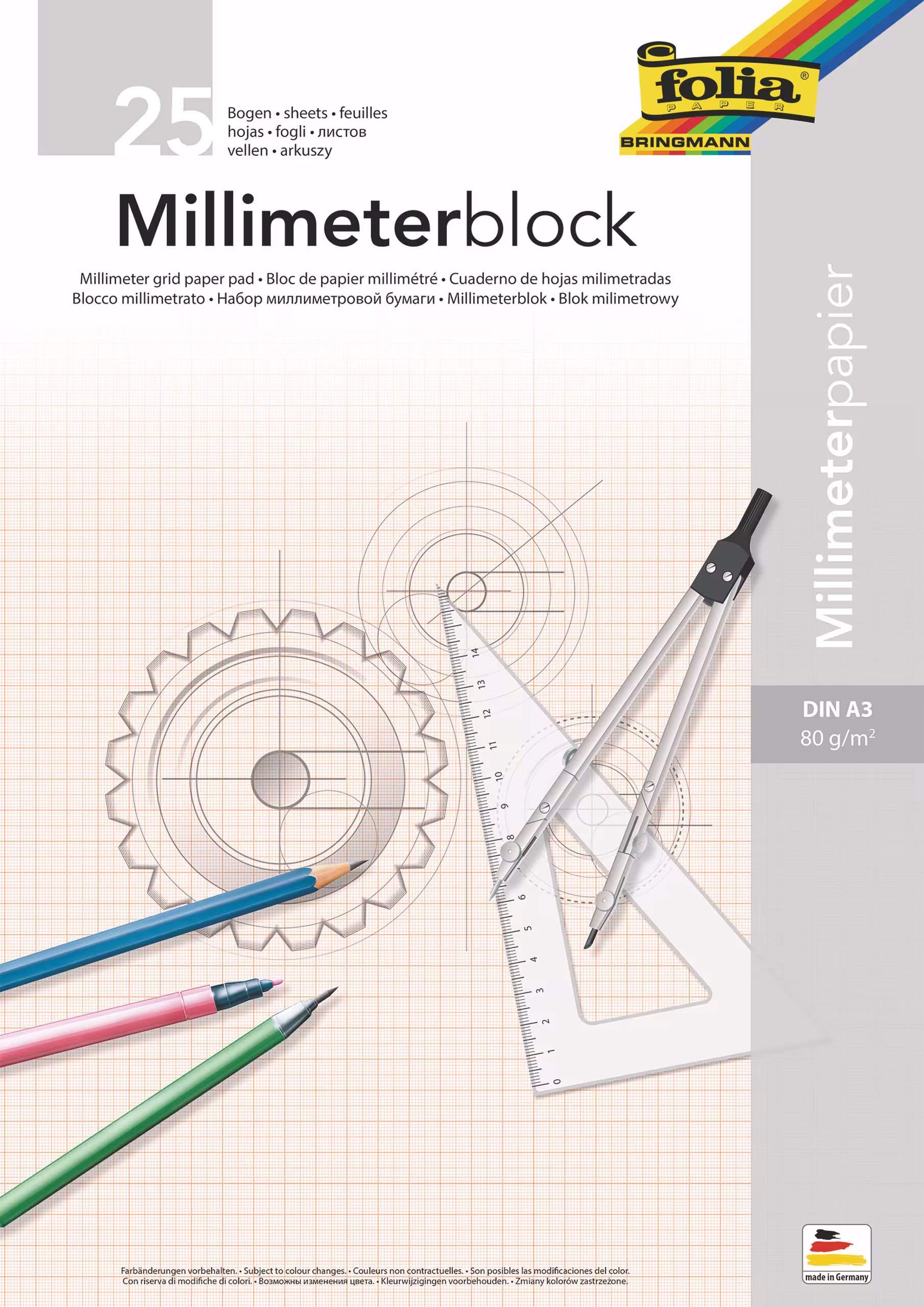 De 80 g/m2, DIN A3, con borde, el color puede variar del de la foto. 25 hojas.
