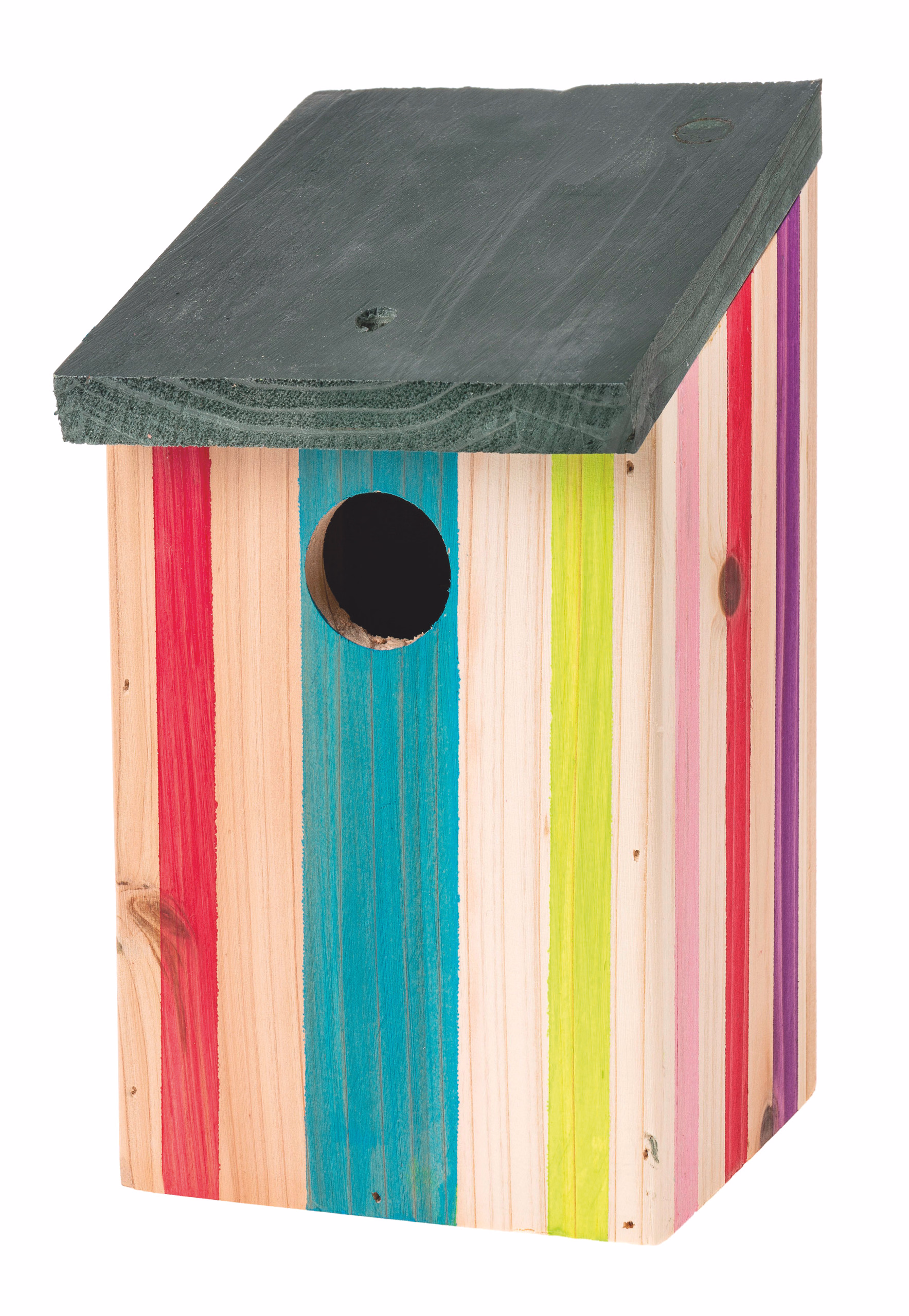 Nuestra caja nido es de madera aserrada y sin tratar y ya viene montada. Medidas: 220 x 115 x 140 mm, abertura ø 30 mm, 1 ud.