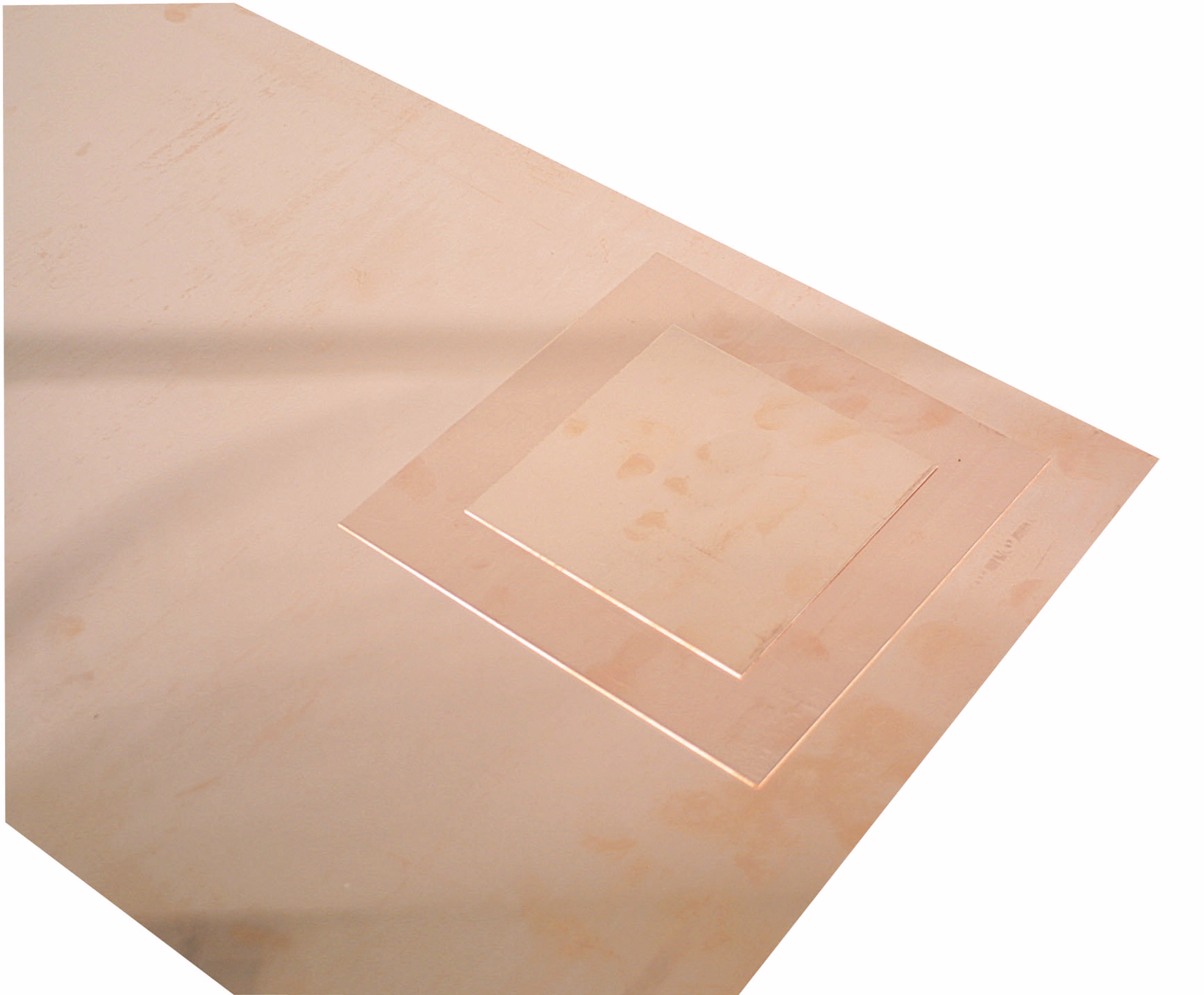 Chapa de cobre E-CU, desnudo, de temple semiduro, para trabajos técnicos o repujado.