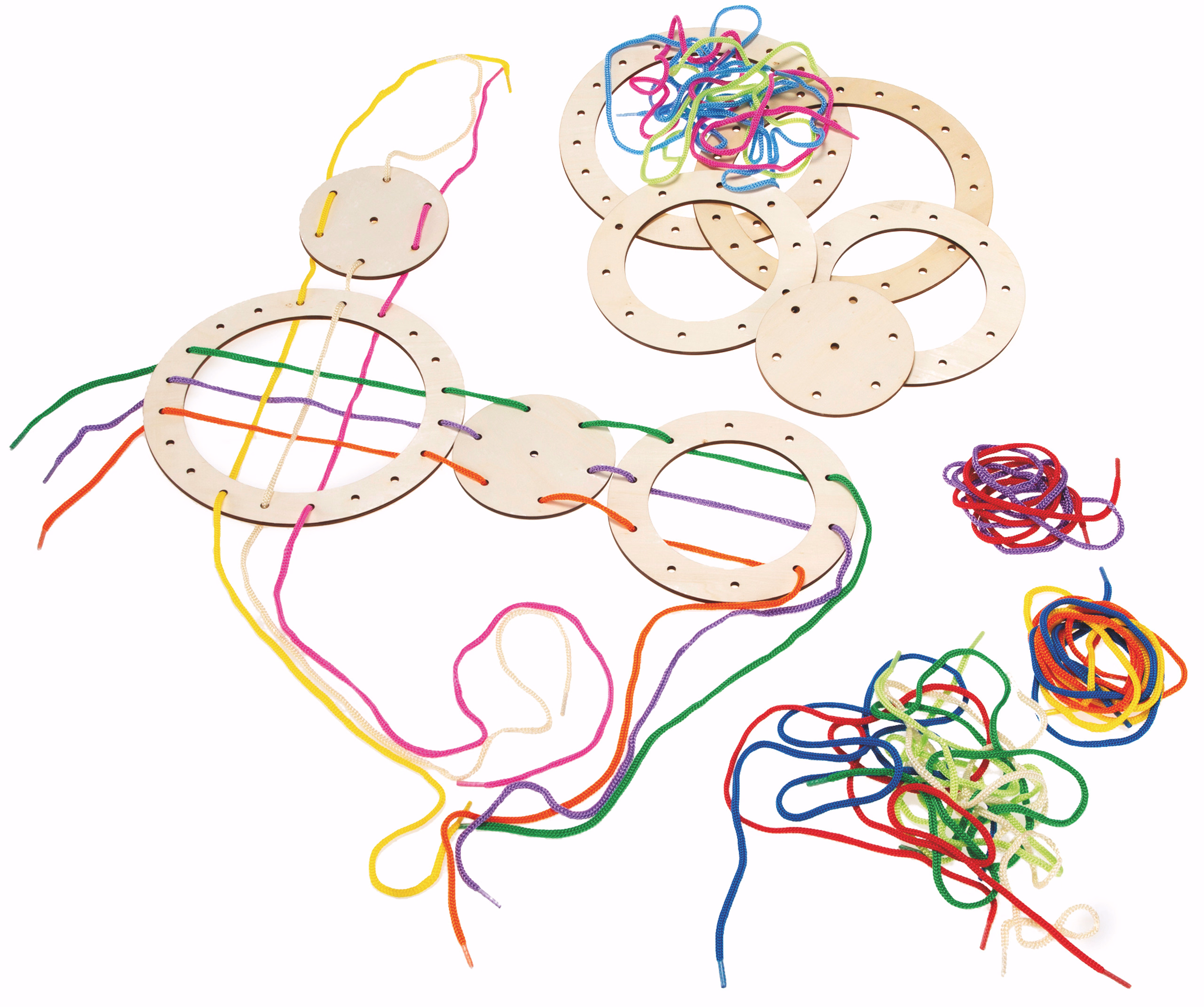 Cordones de polipropileno su con las puntas reforzadas para facilitar el enhebrado. Ideal para manualidades y para ejercitar la motricidad fina. Medidas del co...