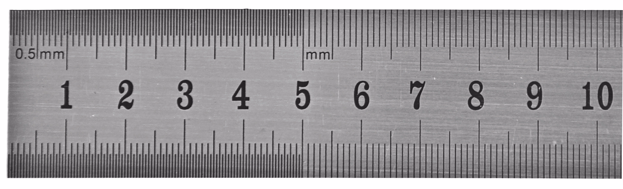 Flexible, de acero inoxidable, versión extra ancha, escalas con distancias de 1 mm y 0,5 mm (hasta 5 cm). Medidas: 500 x 15 mm. 1 ud.