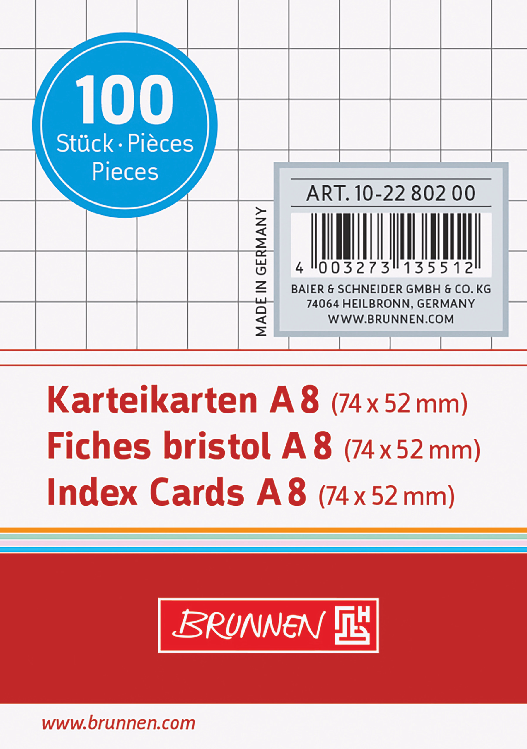Tarjetas de índice BRUNNEN cuadros, DIN A8, 100 ud