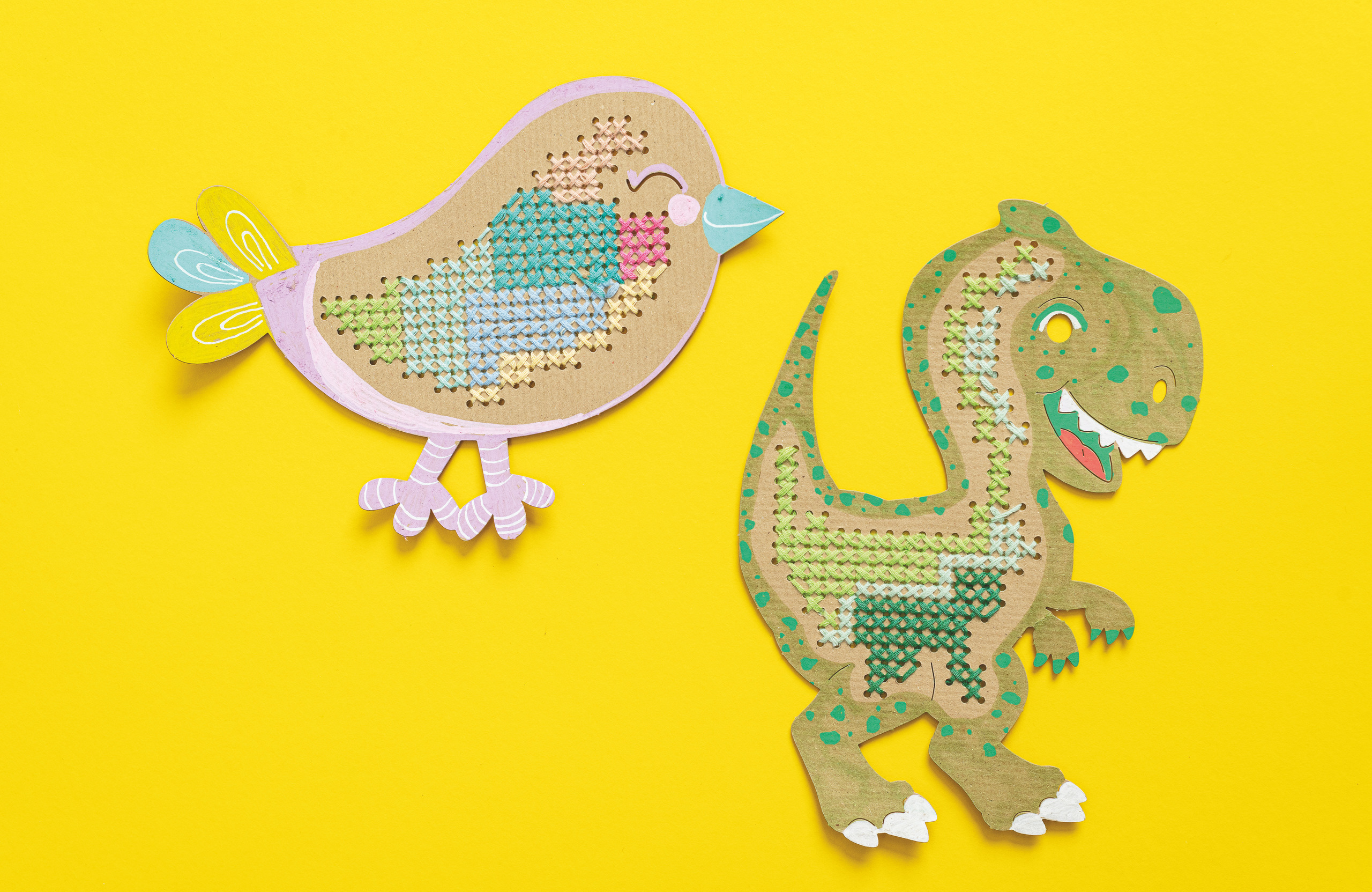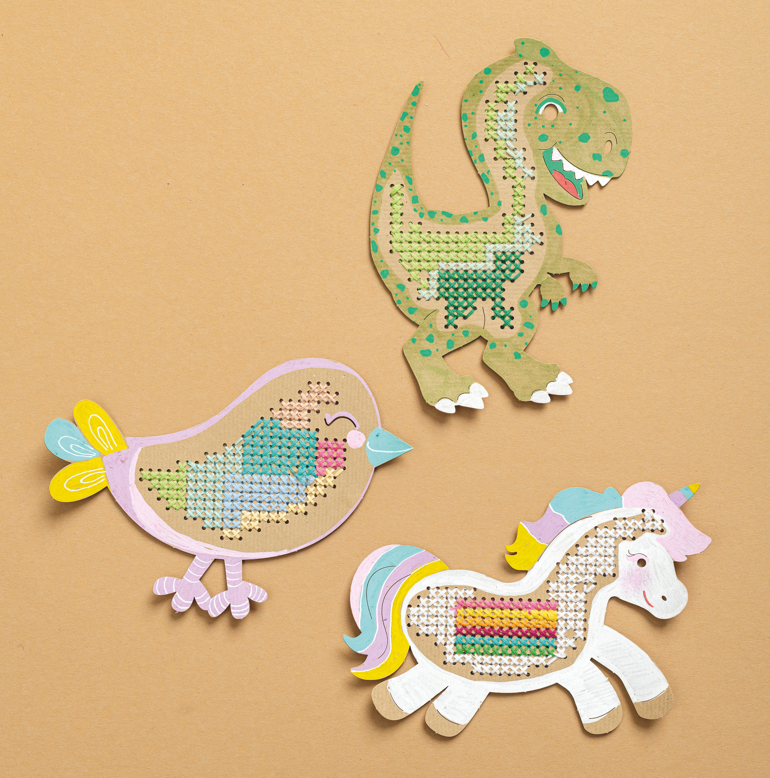 250 g/qm carton kraft, découpé au laser, 24 animaux au point de croix assortis en 12 motifs, format DIN A5, instructions illustrées incluses, 24 feuilles