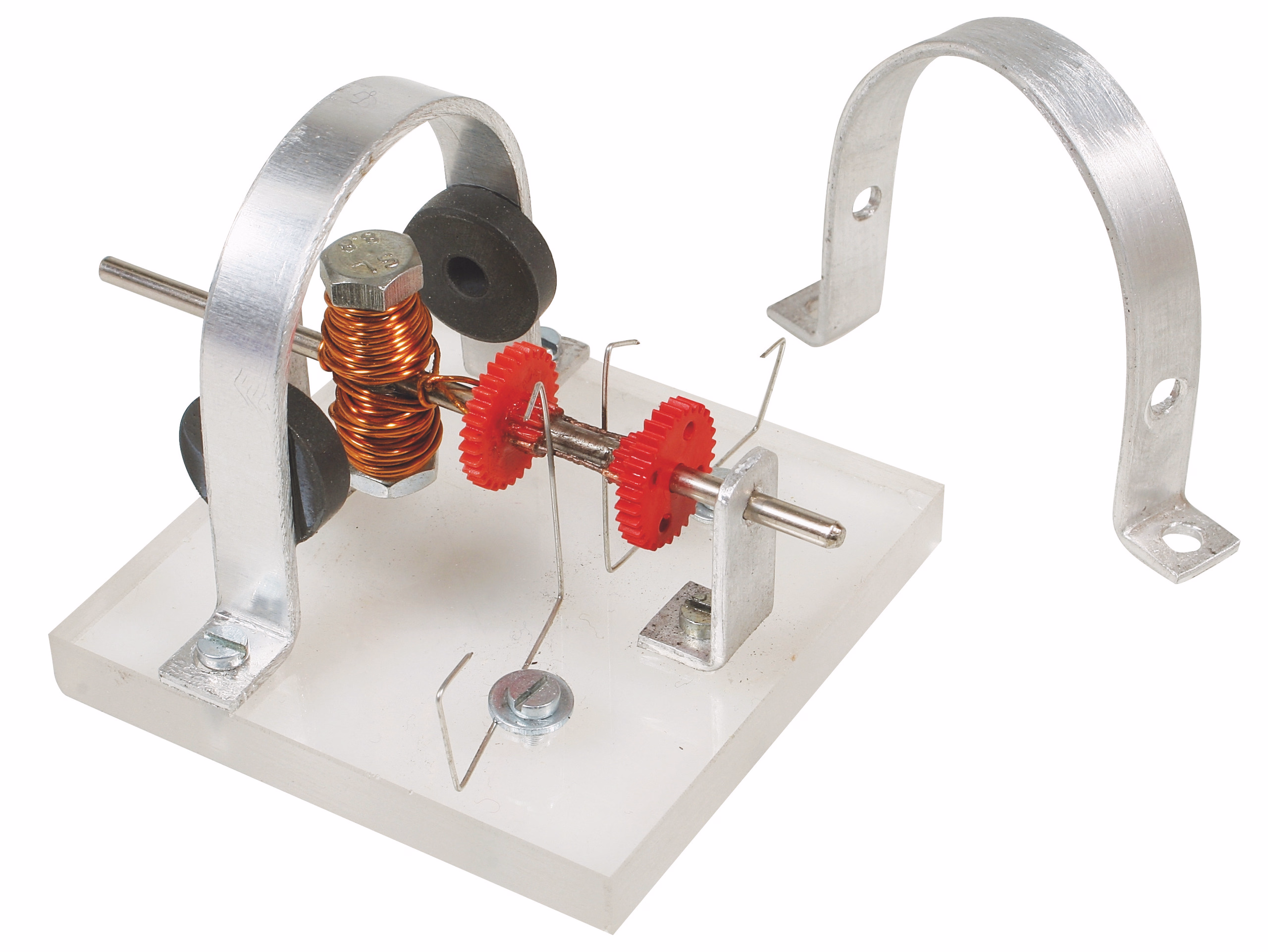 Le moteur électrique se caractérise par une construction simplifiée et une vitesse de fonctionnement élevée. Le fil de cuivre émaillé épais empêche la formation habituelle de pelotes lors de l'enroulement de la bobine et permet de renoncer aux travaux de soudure sur le collecteur. Les instructions détaillées décrivent différentes possibilités de fabrication de l'étrier et des supports de palier.