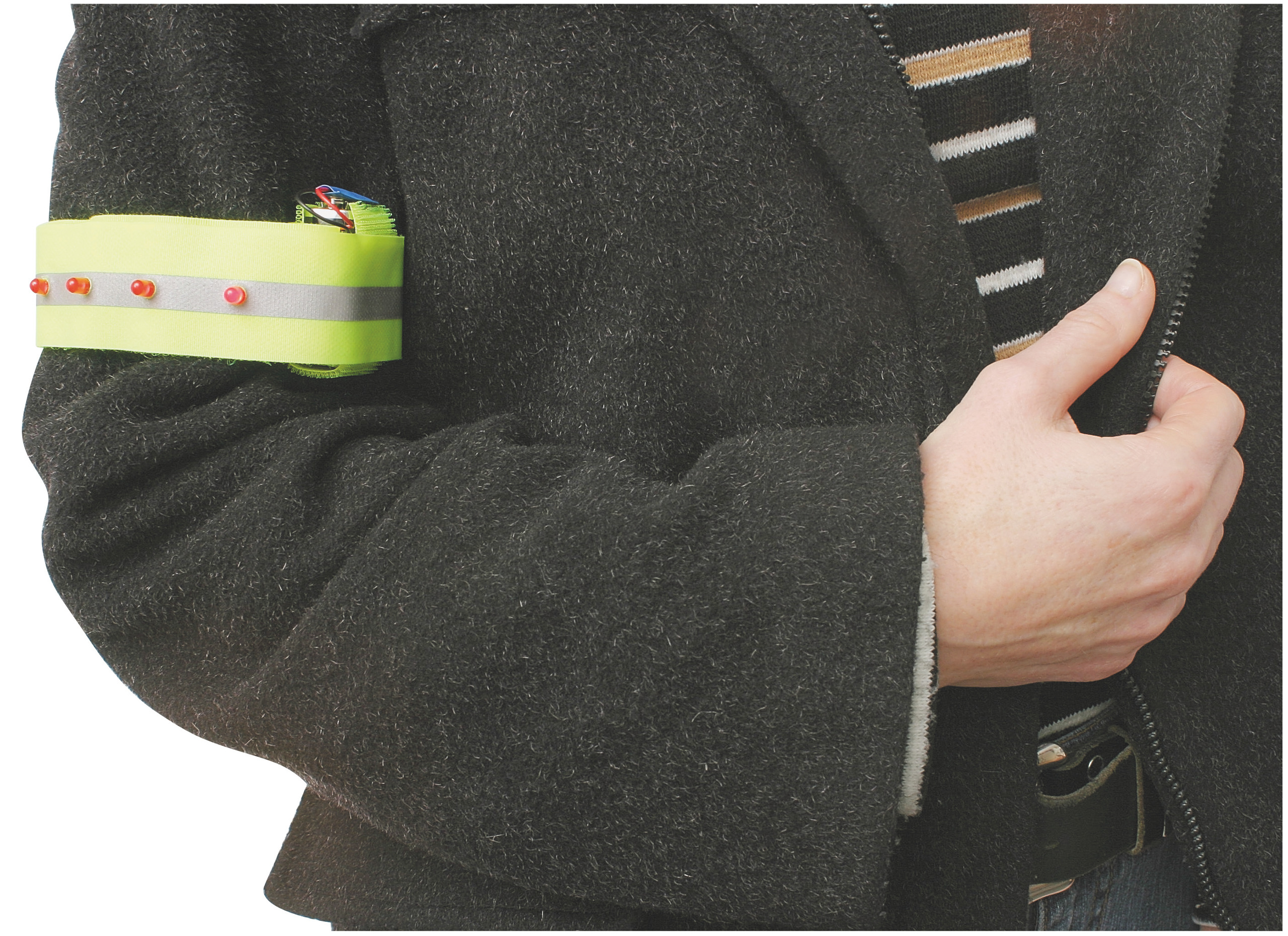 Bande velcro fluo avec bandes réfléchissantes et LED clignotantes, offre la sécurité aux enfants et aux adultes dans la circulation ou pen...