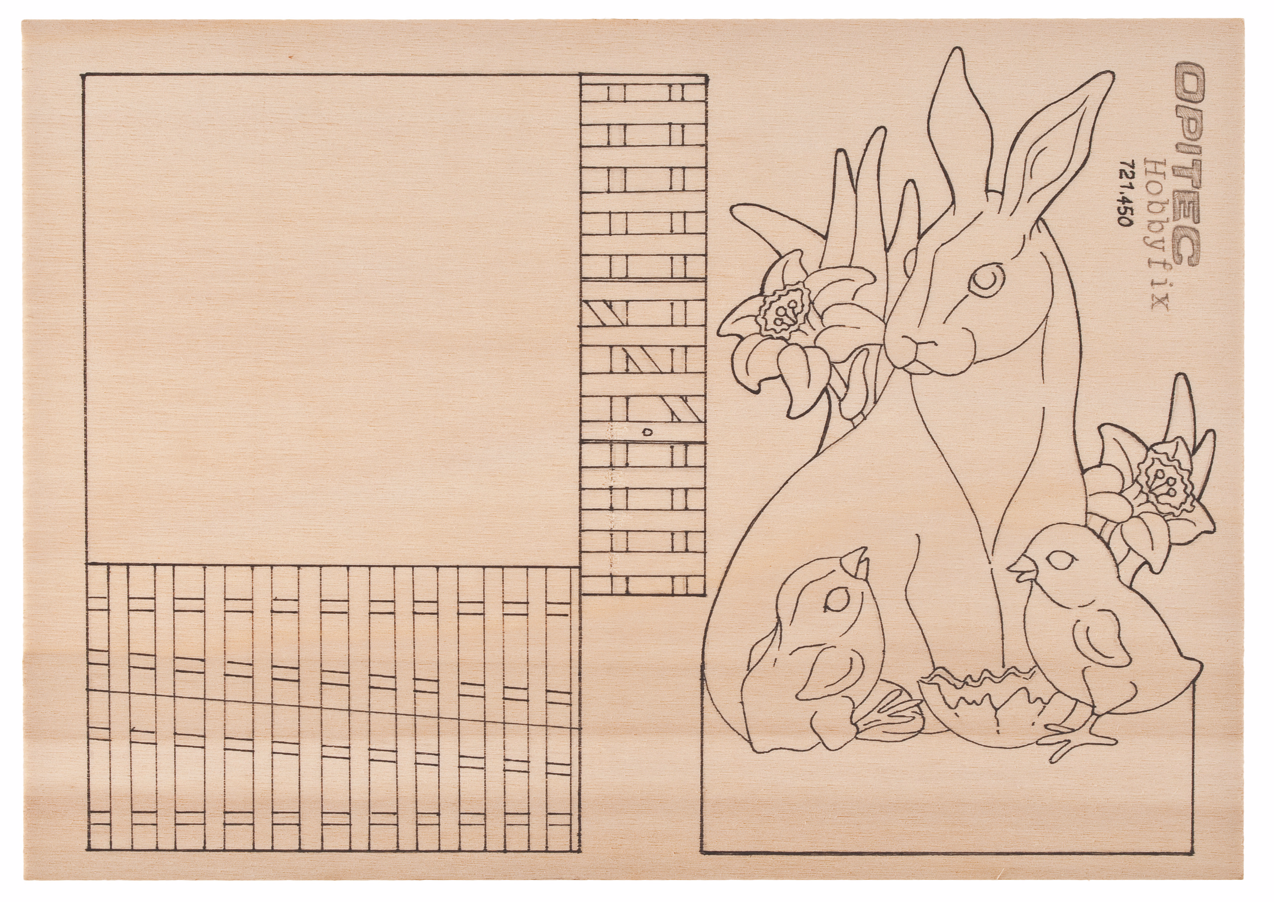 Travail de scie à chantourner simple, contreplaqué imprimé avec motif. Travaux nécessaires : Scier, couper, limer, coller et peindre.