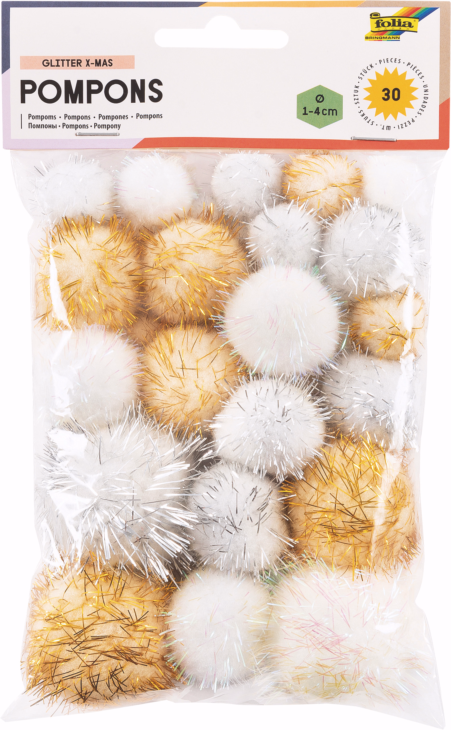 Pompons Noël pailleté, set de 30 pièces