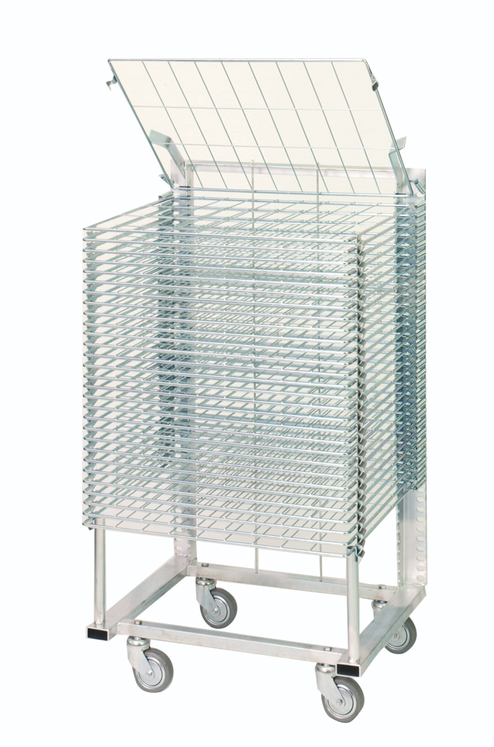 Séchoir stable mobile avec 4 roulettes. Avec un grillage solide soudé 75 x 80 mm.