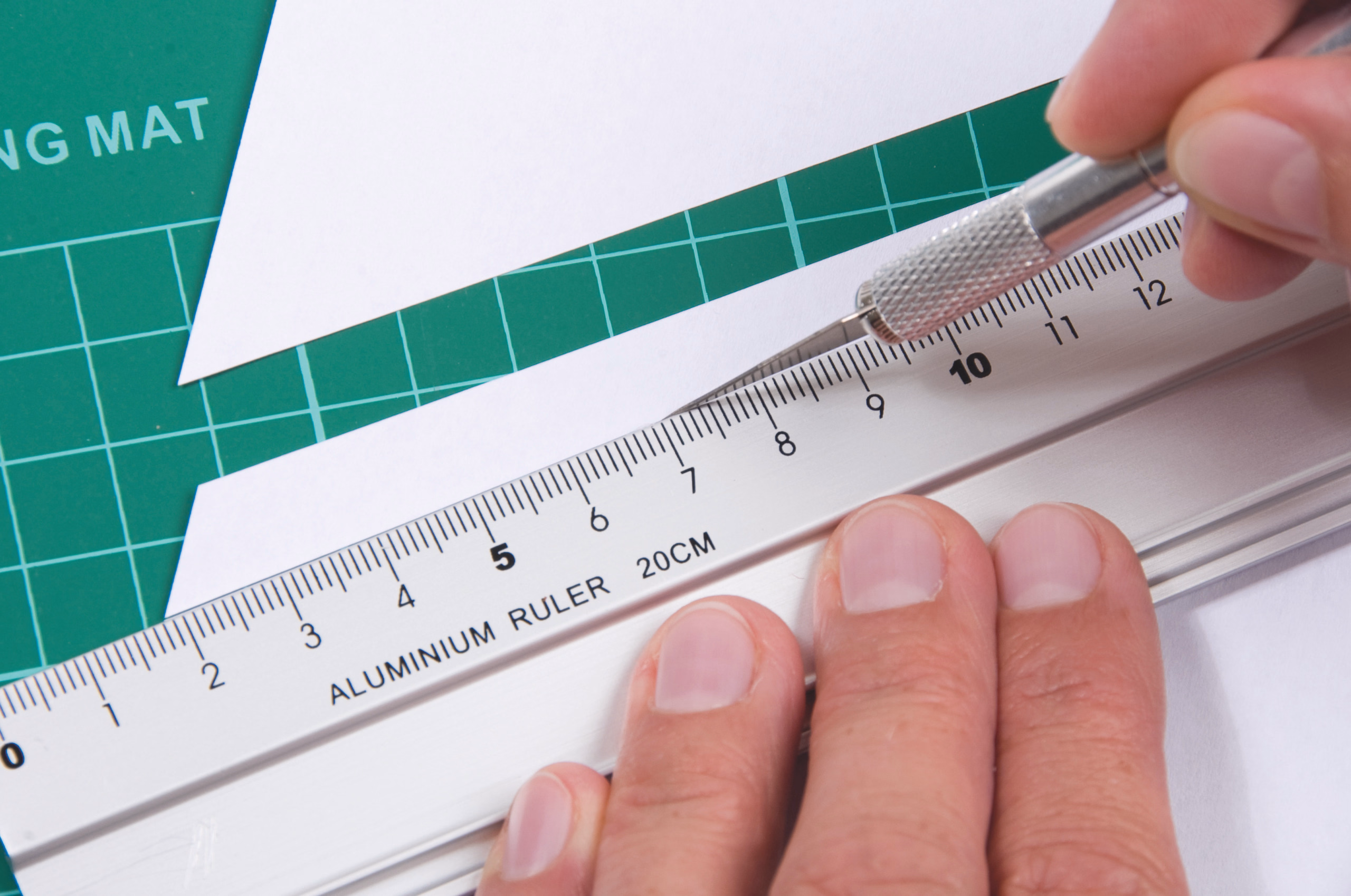Contenu : 1 tapis de découpe env. 220 x 300 mm, 1 scalpel, 6 lames de rechange, 1 capuchon de protection, 1 règle de découpe 200 mm, 10 pièces