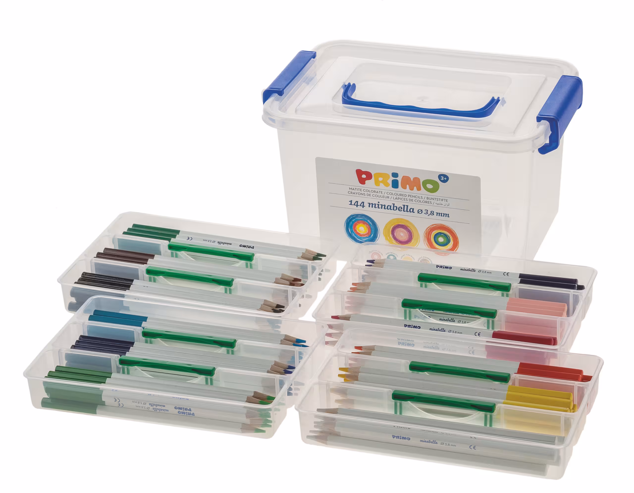 144 crayons de couleur assortis 12 fois dans les couleurs violet, rose clair, rouge, orange, jaune, blanc, vert clair, violet foncé, bleu, vert, marron et noir. Stylos de forme hexagonale, avec une mine épaisse. Livrés dans une boîte en plastique pratique avec couvercle et compartiments amovibles. Longueur du stylo : 175 mm, mine : env. ø 3,8 mm, jeu de 144 pièces