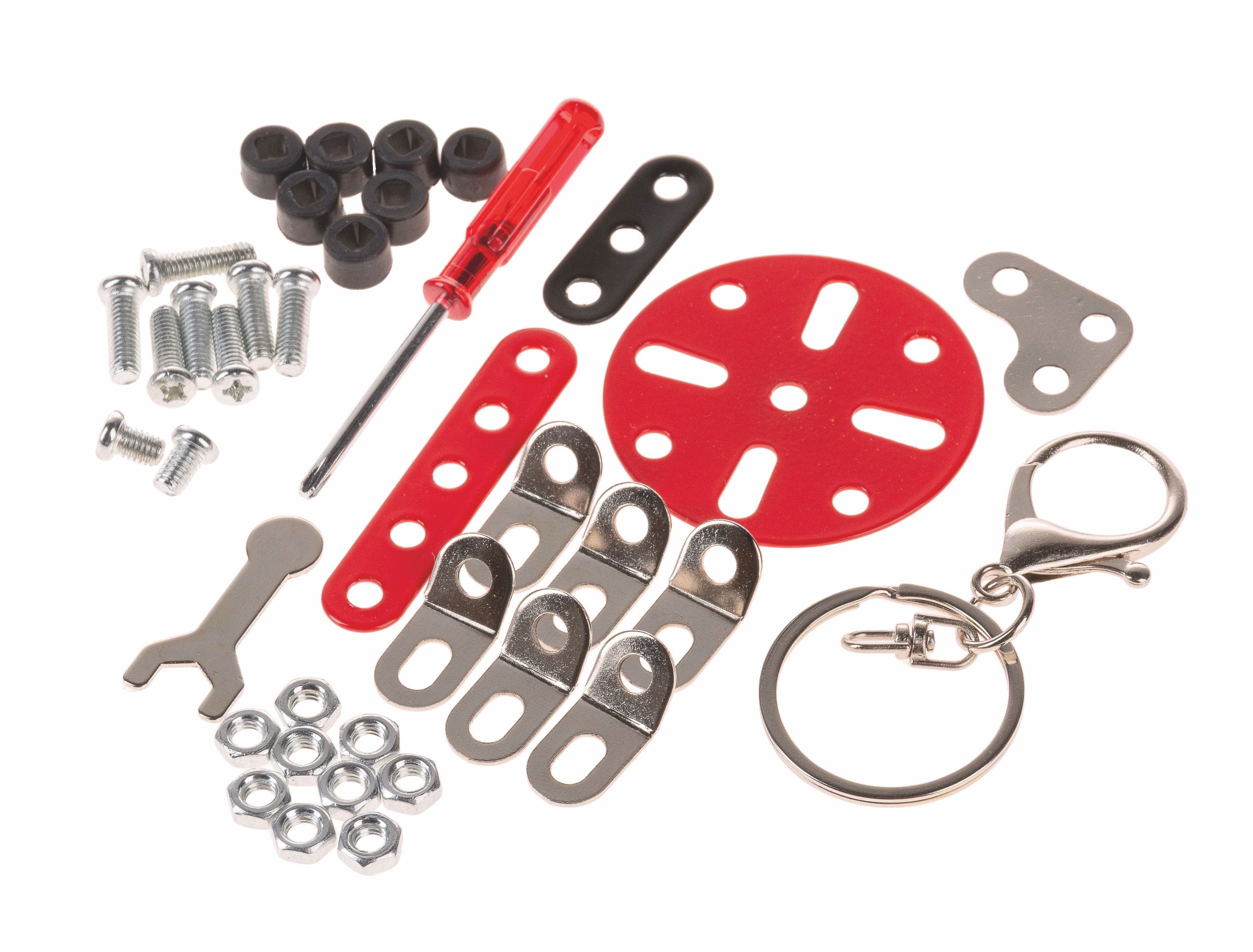 Découvrir le monde de la technique en s'amusant : Le mini-kit de construction métallique entraîne la motricité, la créativité et la pensée spatiale. Toutes les pièces sont compatibles entre elles et extensibles. Les outils de montage et les instructions illustrées sont inclus dans la livraison. Dimensions : env. 60 x 60 x 20 mm, 44 pièces