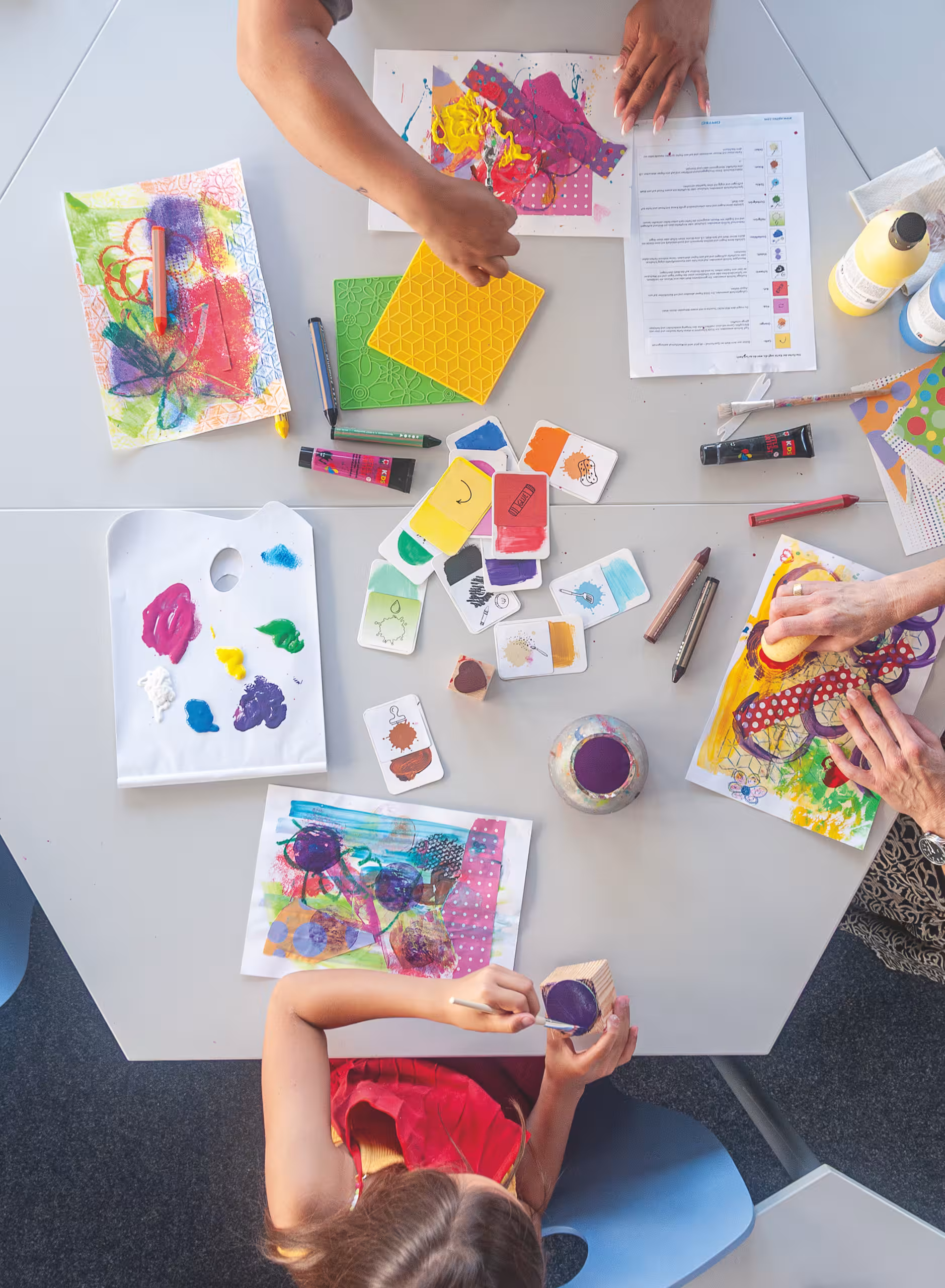 à créer soi-même, qualité forte, mat, blanc, dans une boîte coulissante. Dimensions : 6,5 x 10 cm, y compris 2 pochoirs et "Mix it up !" Jeu de couleurs Instructions Code QR à télécharger