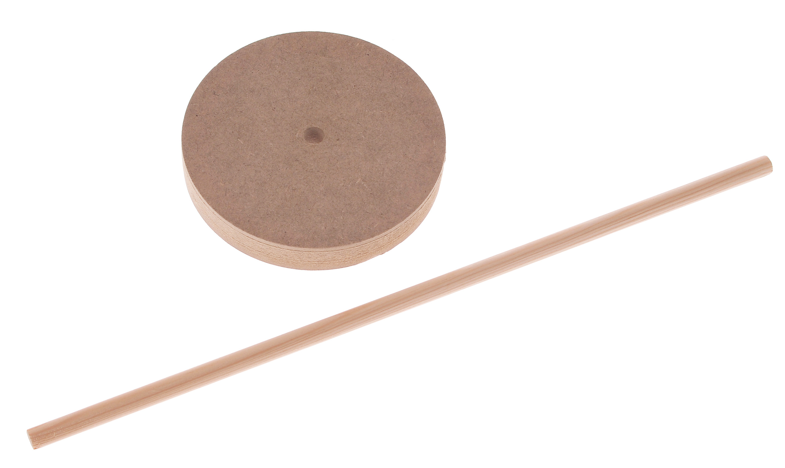 En panneau de fibres, à assembler, panneau rond, naturel, sans décoration, dimensions : environ 100 x 15 x 300 mm, dimensions des tiges : environ 300 x 8 mm, en 2 parties