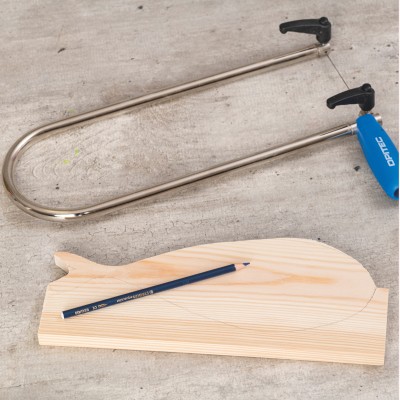 Les élèves créent un poisson en bois. Ils commencent par dessiner le poisson sur la planche de bois. Ils fixent la planche de sciage à la table de travail à l'aide d'un serre-joint. S'ils le souhaitent, ils fixent la planche de bois avec un autre serre-joint. Dans un premier temps, vous sciez la forme du poisson avec la scie à chantourner. Dans un deuxième temps, ils travaillent grossièrement les bords du poisson en bois avec une râpe, puis ils finissent avec une lime plus fine. Sous surveillance, les enfants percent un trou dans le modèle pour l'accrocher. Ils peignent le poisson avec de la peinture acrylique et réalisent les finitions avec des marqueurs de couleur. Pour l'accrocher, ils passent un morceau de fil de jute dans le trou et le nouent. Pour finir, ils fixent des boutons en guise d'yeux. Ensuite, les élèves échangent leurs expériences en groupe et présentent leur modèle.